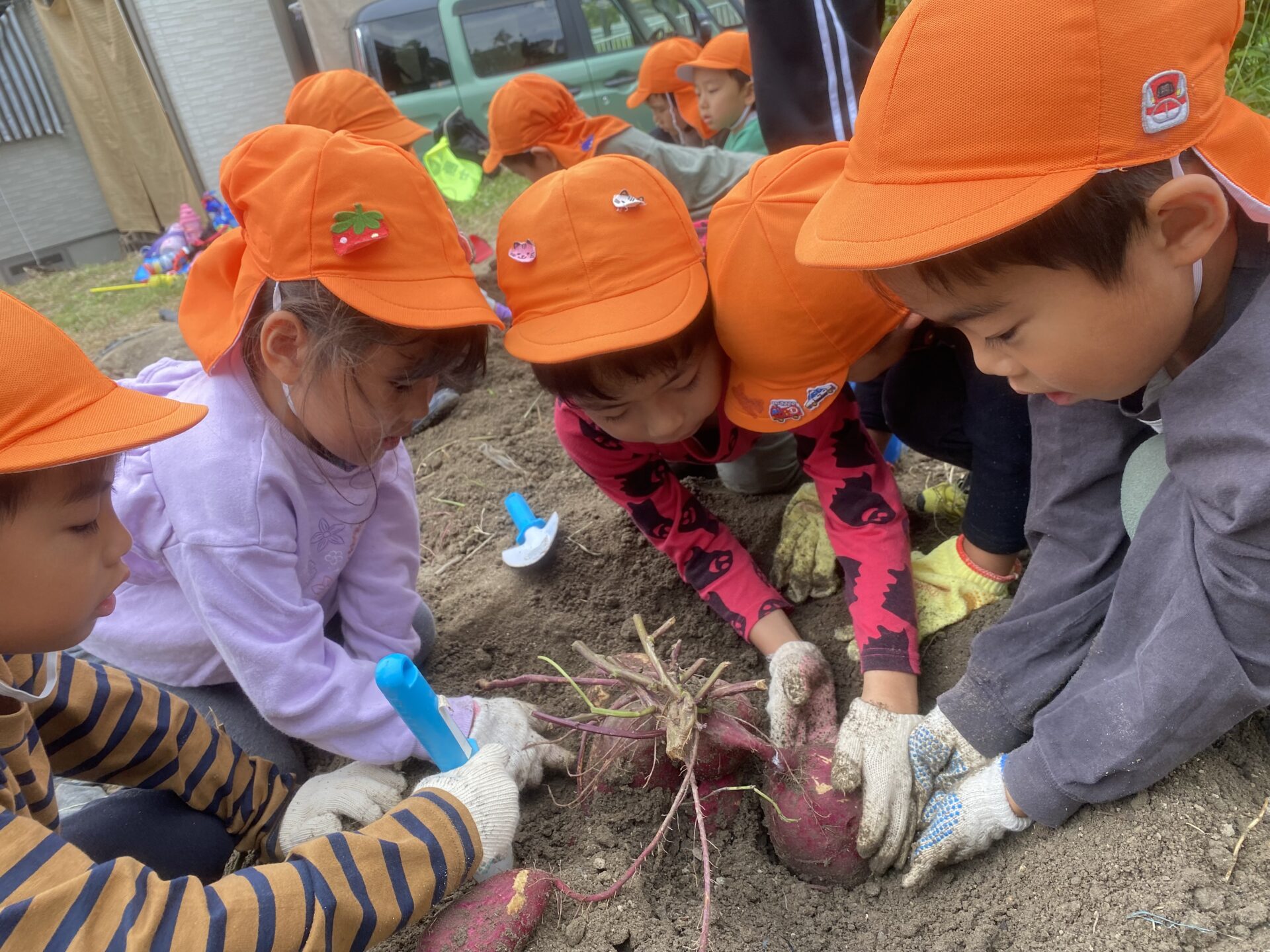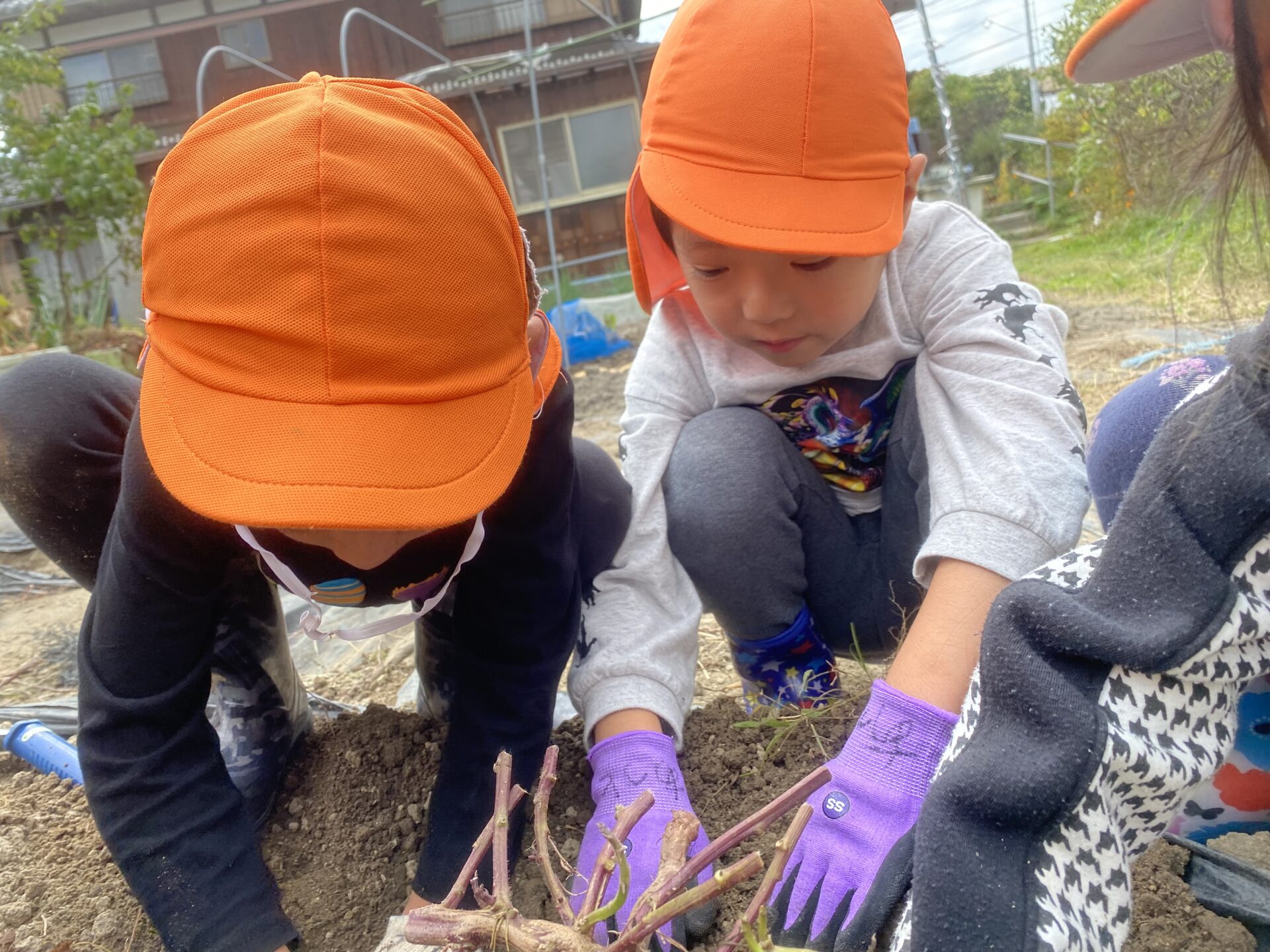大きなお芋は友だち同士協力して、「ここを掘って~」「ここにもあるよ!手伝って!」と会話をしながら掘ることが出来ました🌱✨✨