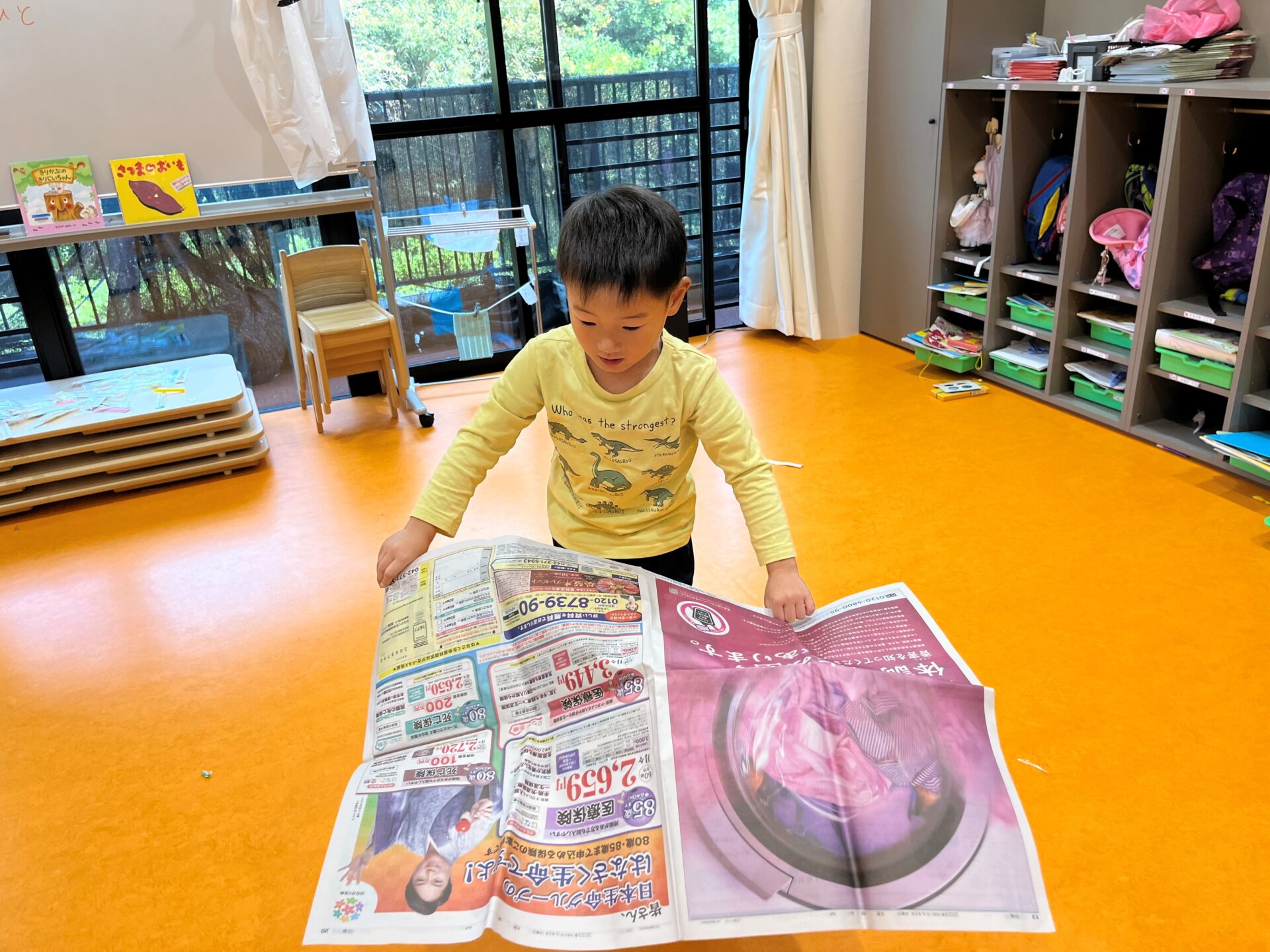 「新聞紙貰ってこよう!」など、子ども達で考えながら、アイディアを出し合ってかぶも作りました✌