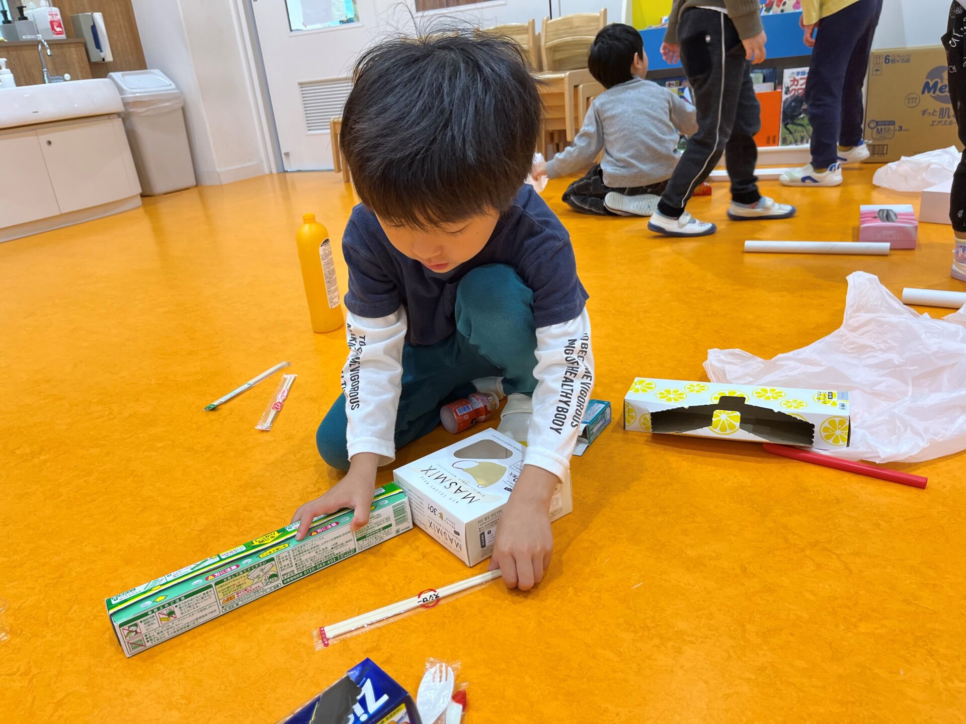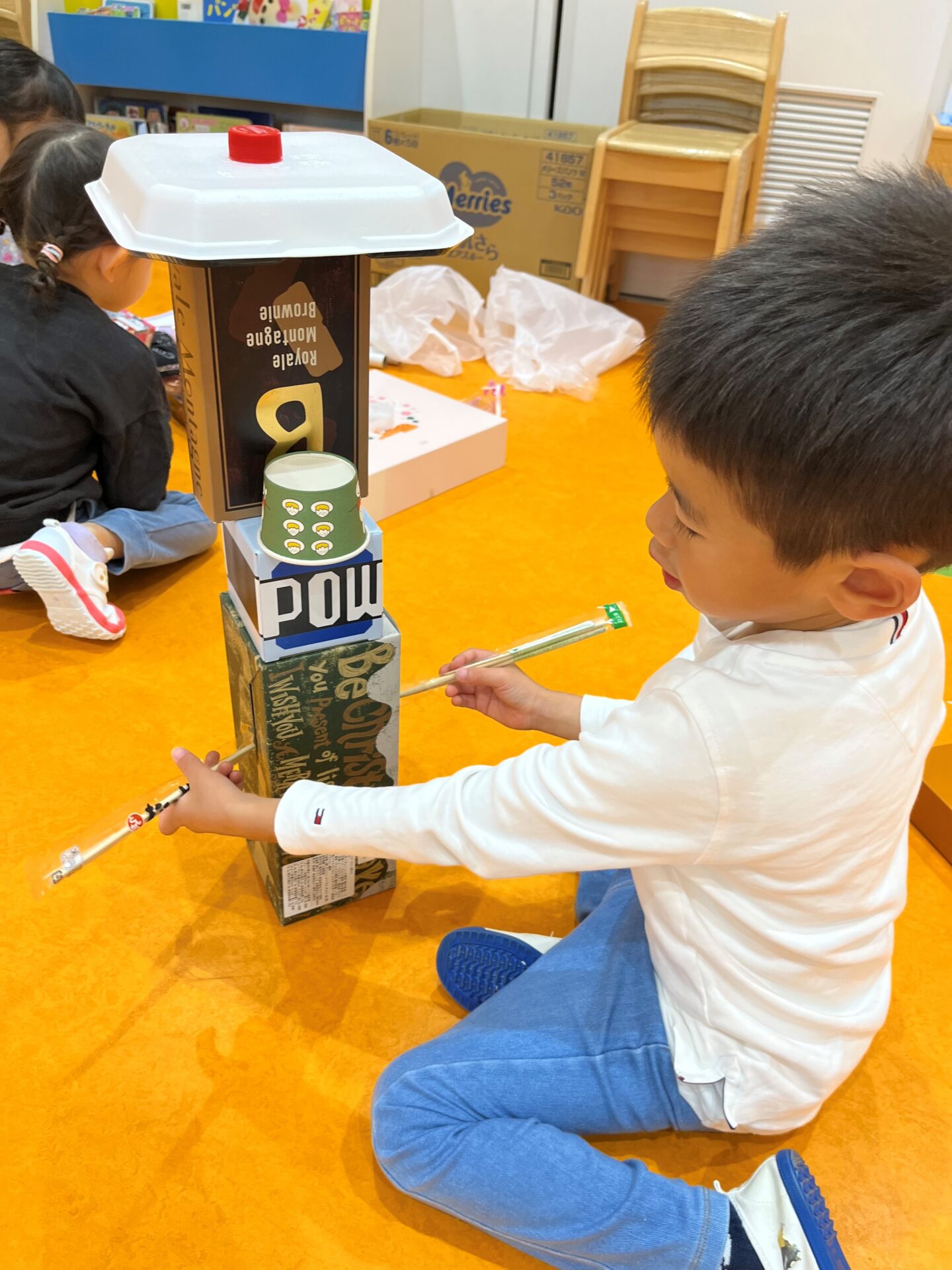 「ここはこうしようかな」「これを手にして・・・」と自分で考えながら組み立てて作りました😊