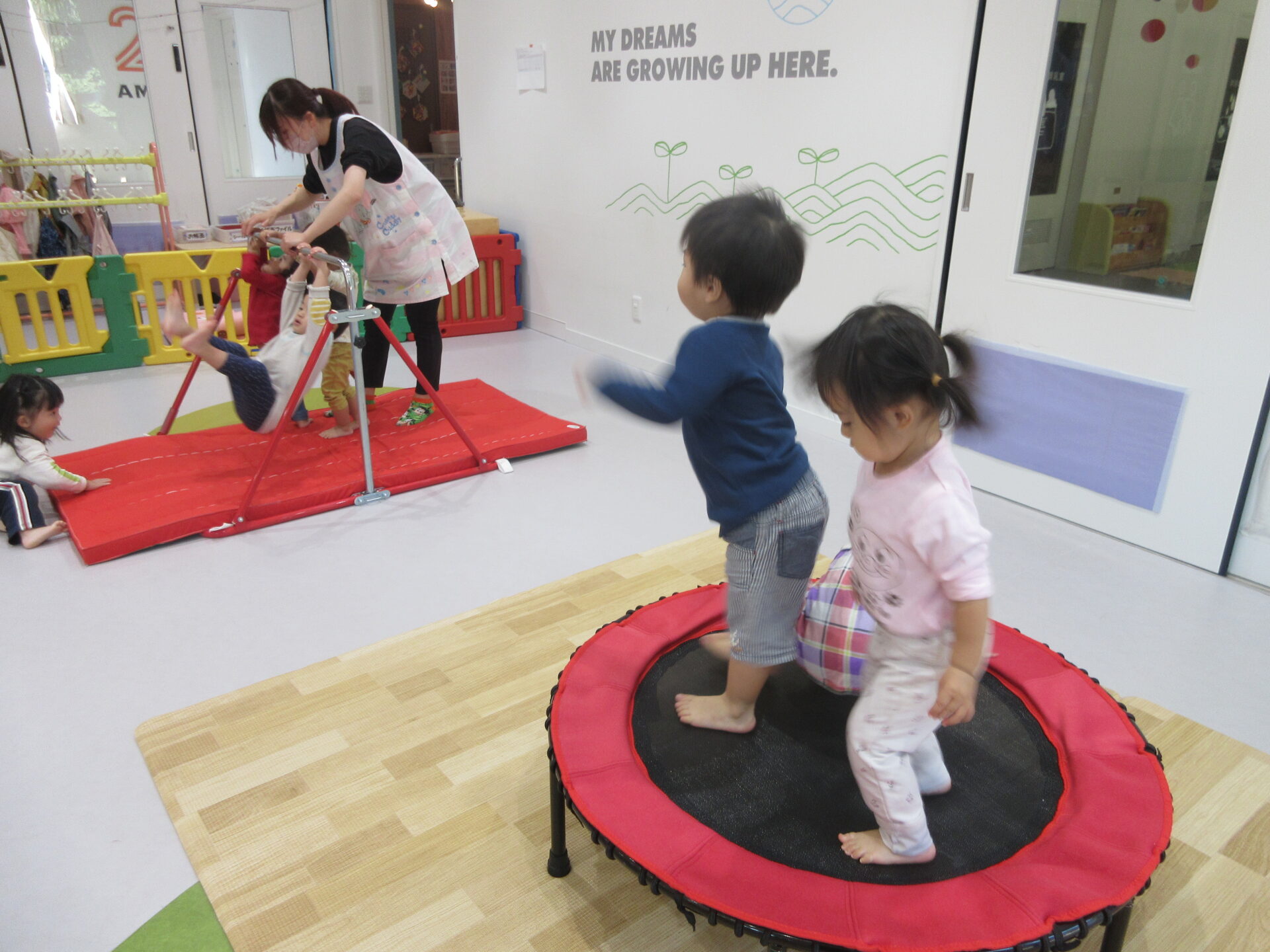 お部屋でトランポリンや鉄棒などに挑戦しました!