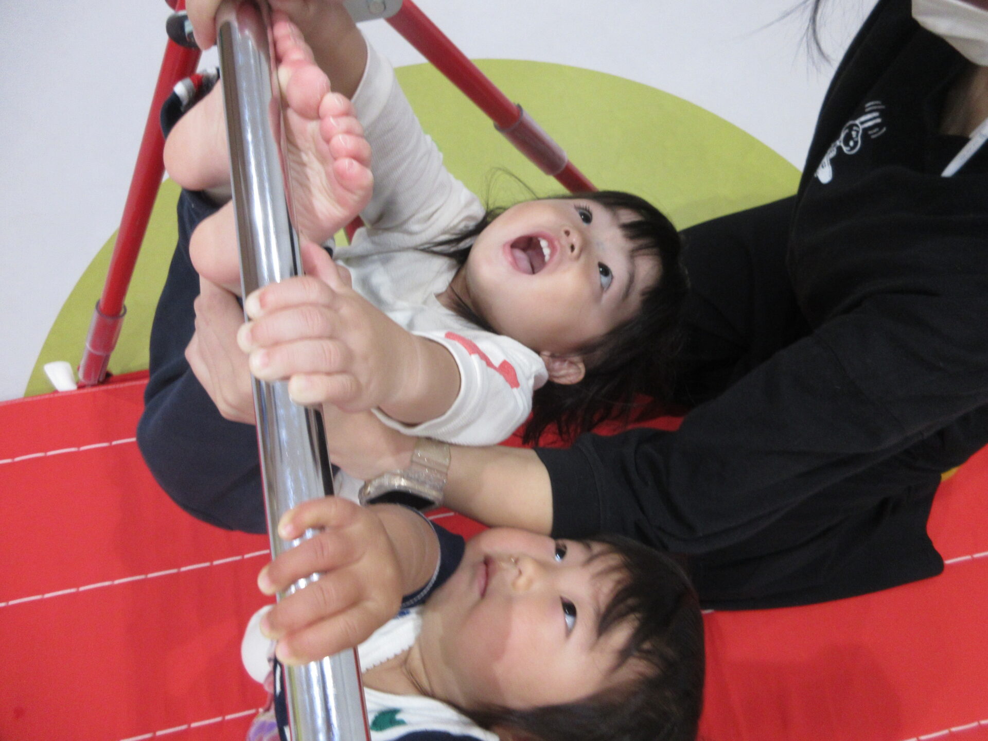 鉄棒では、ぶら下がったり鉄棒に足をかけることに挑戦!!