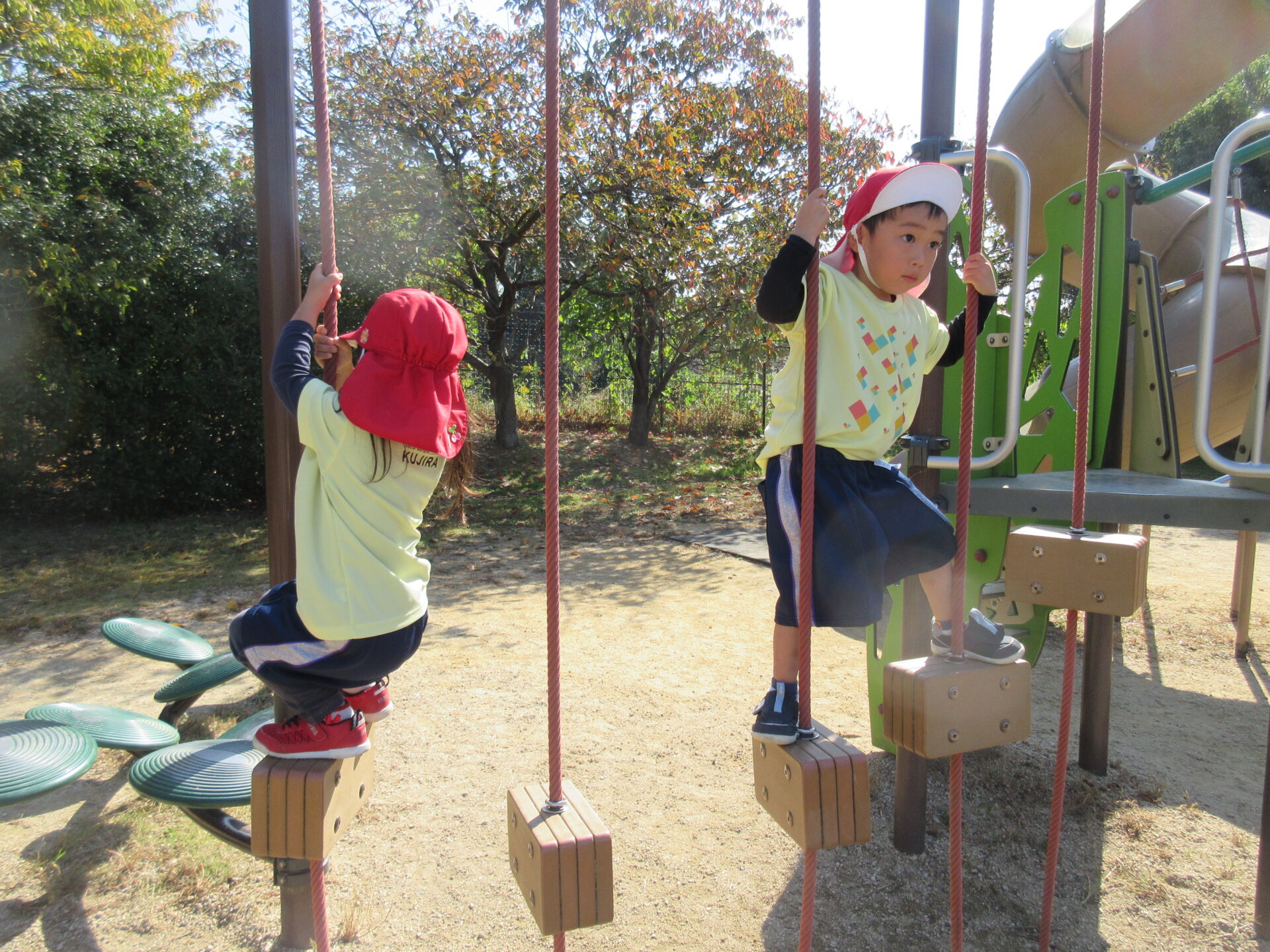 大きな遊具で元気いっぱい遊びます😊何度も何度も挑戦し、できるようになると「みてみて!!」と嬉しそうに報告してくれます🎶💖