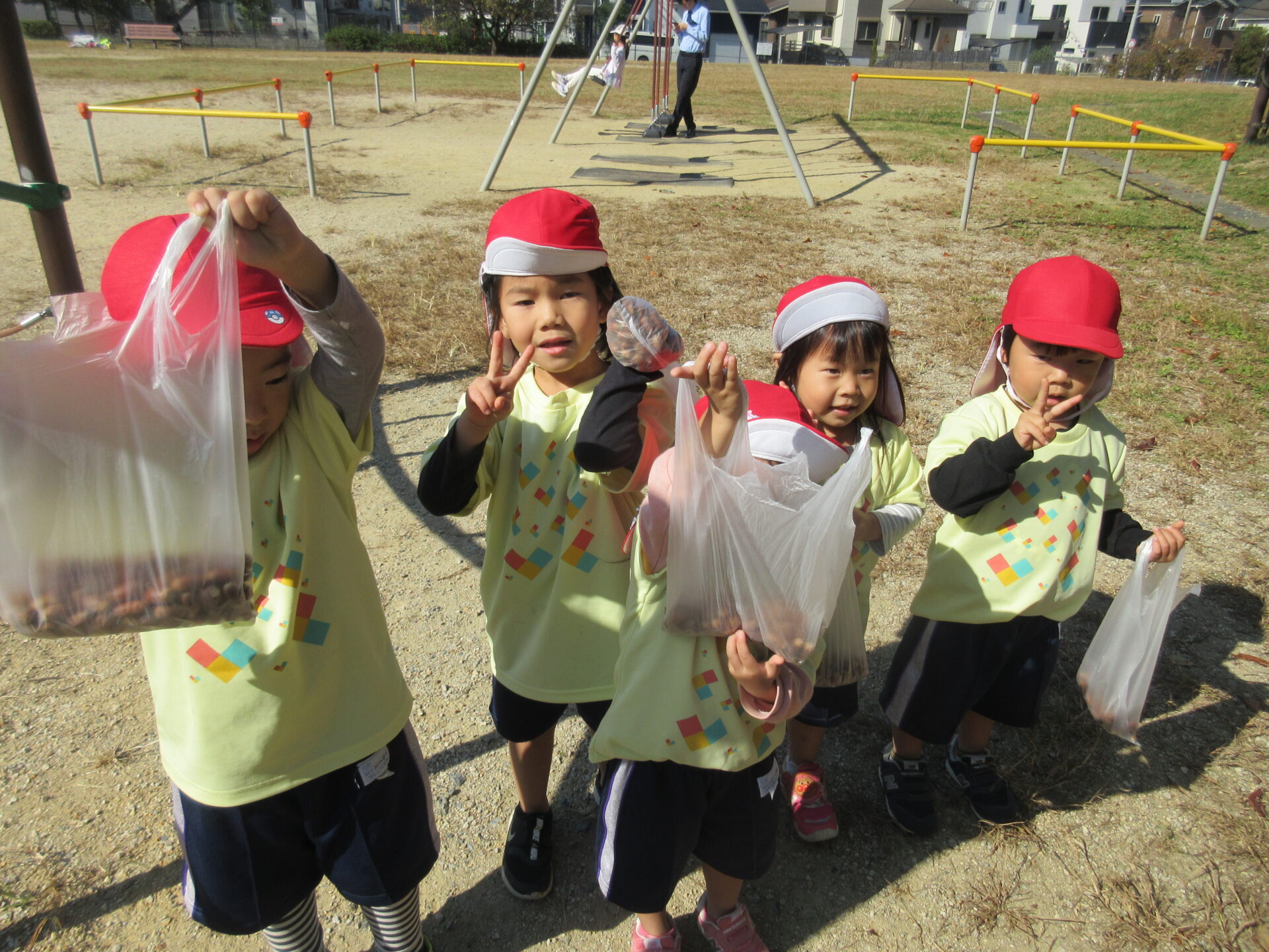 袋いっぱいに詰めて、自分で保育園まで持って帰りました✨