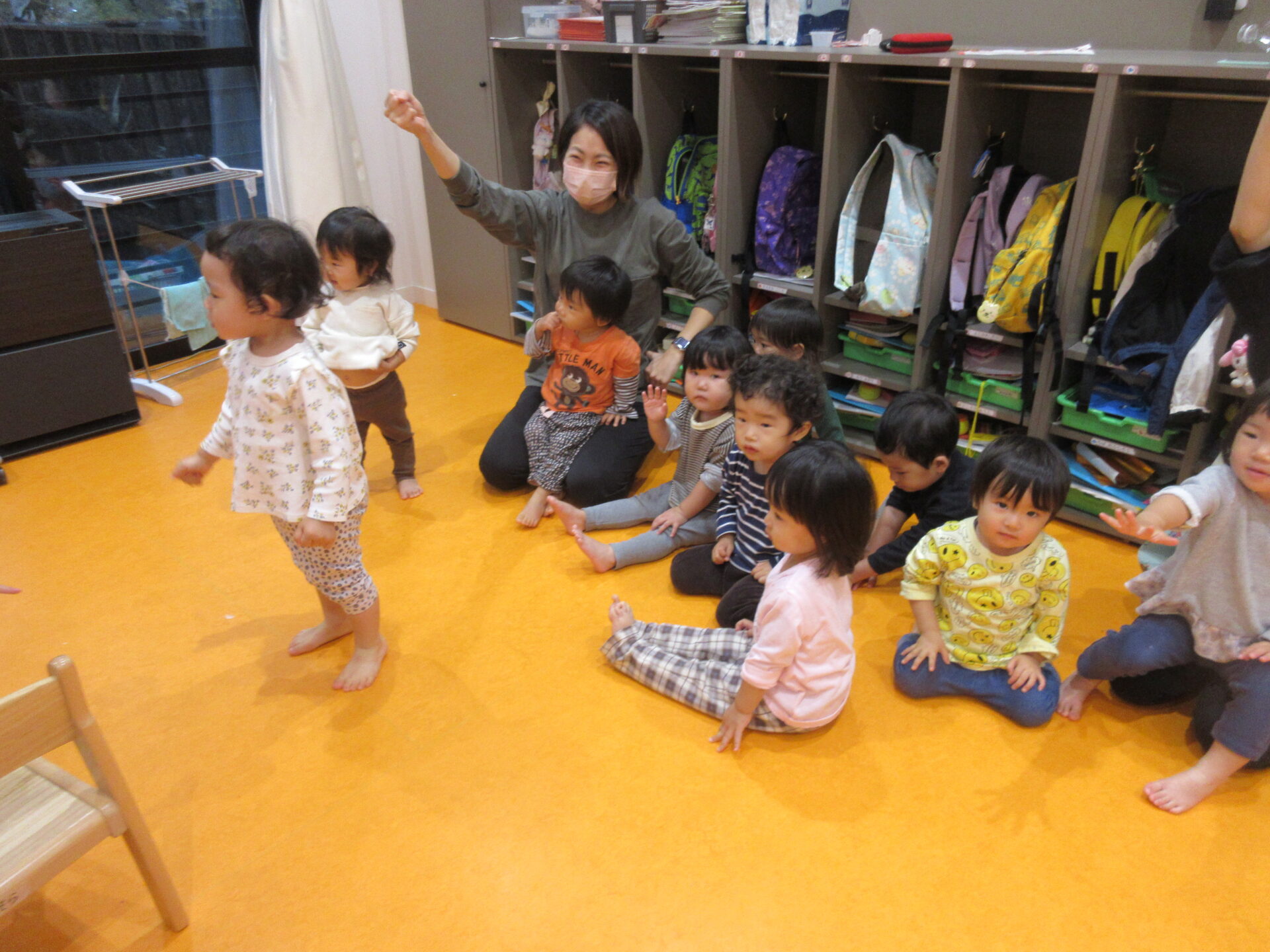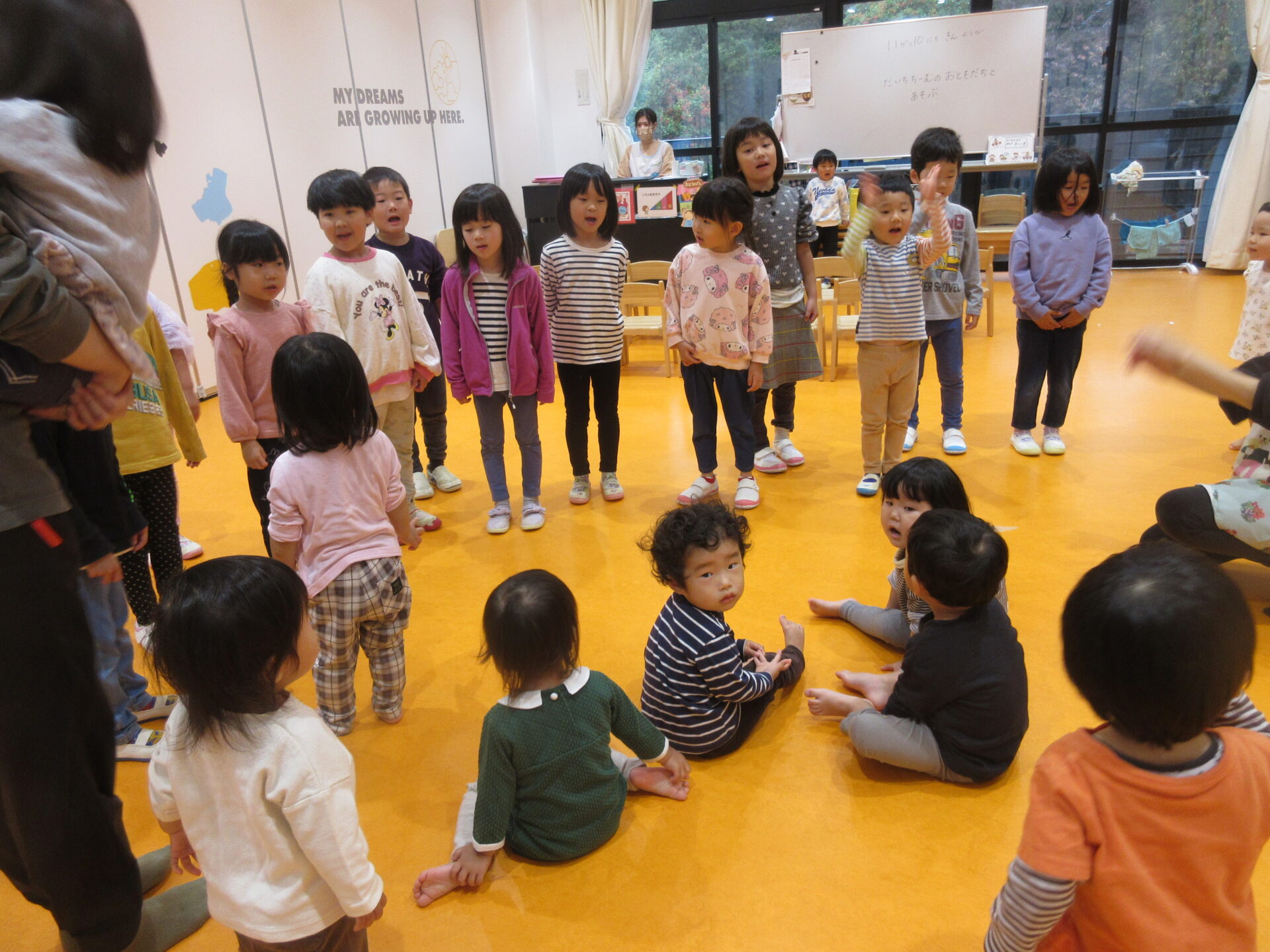 まずは、一緒に「やきいもグーチーパー」「大きな栗の木の下で」「きのこ」を歌いました♪
