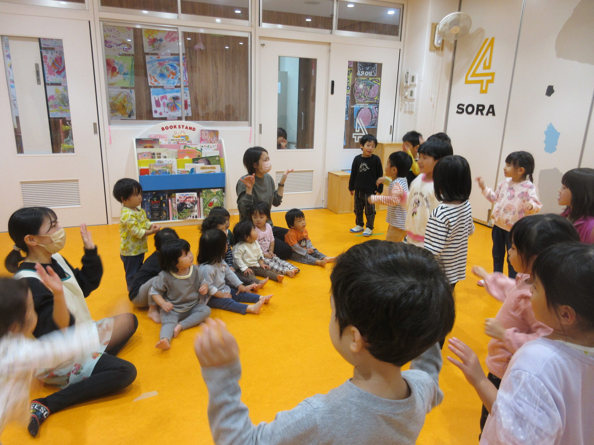 「大きな栗の木の下で」と「きのこ」では、そらチームが歌って踊っているのを見ながら、だいちチームも真似っこをしてくれていました😊