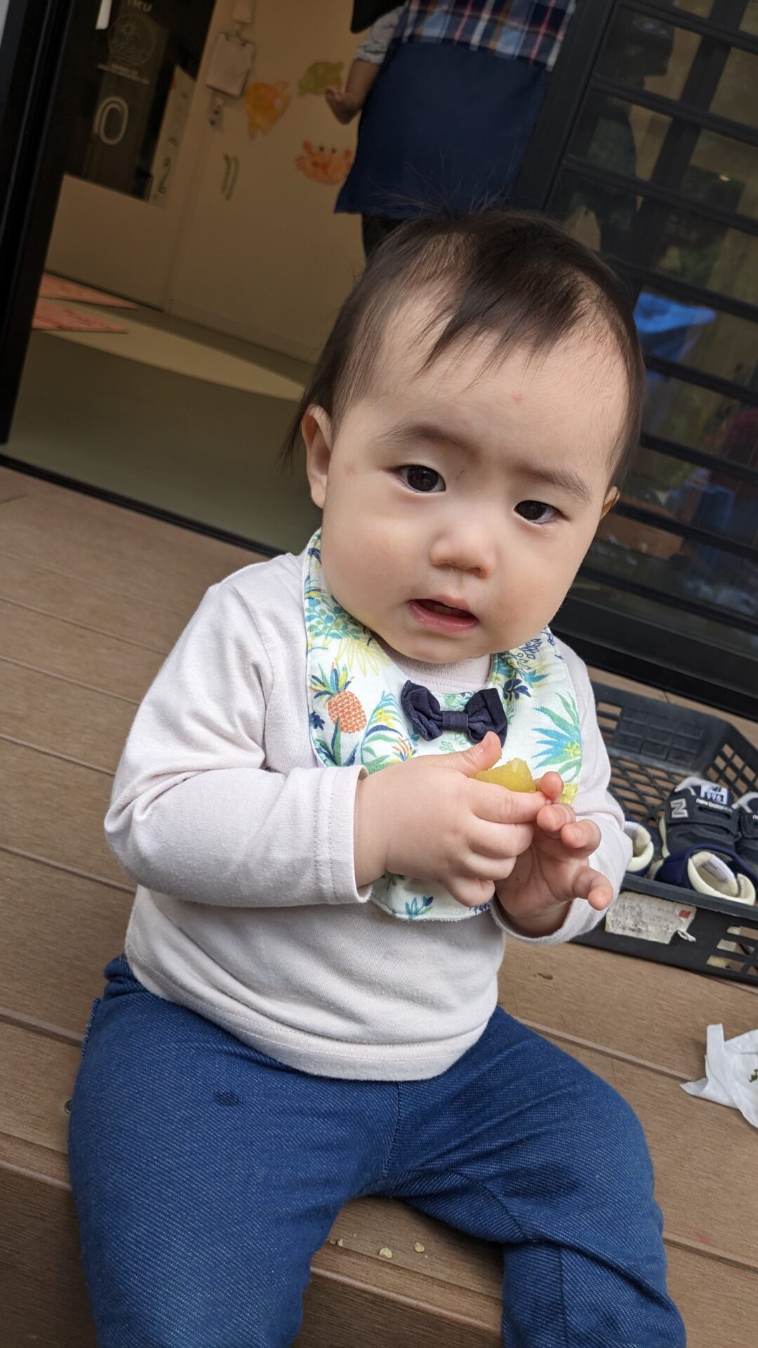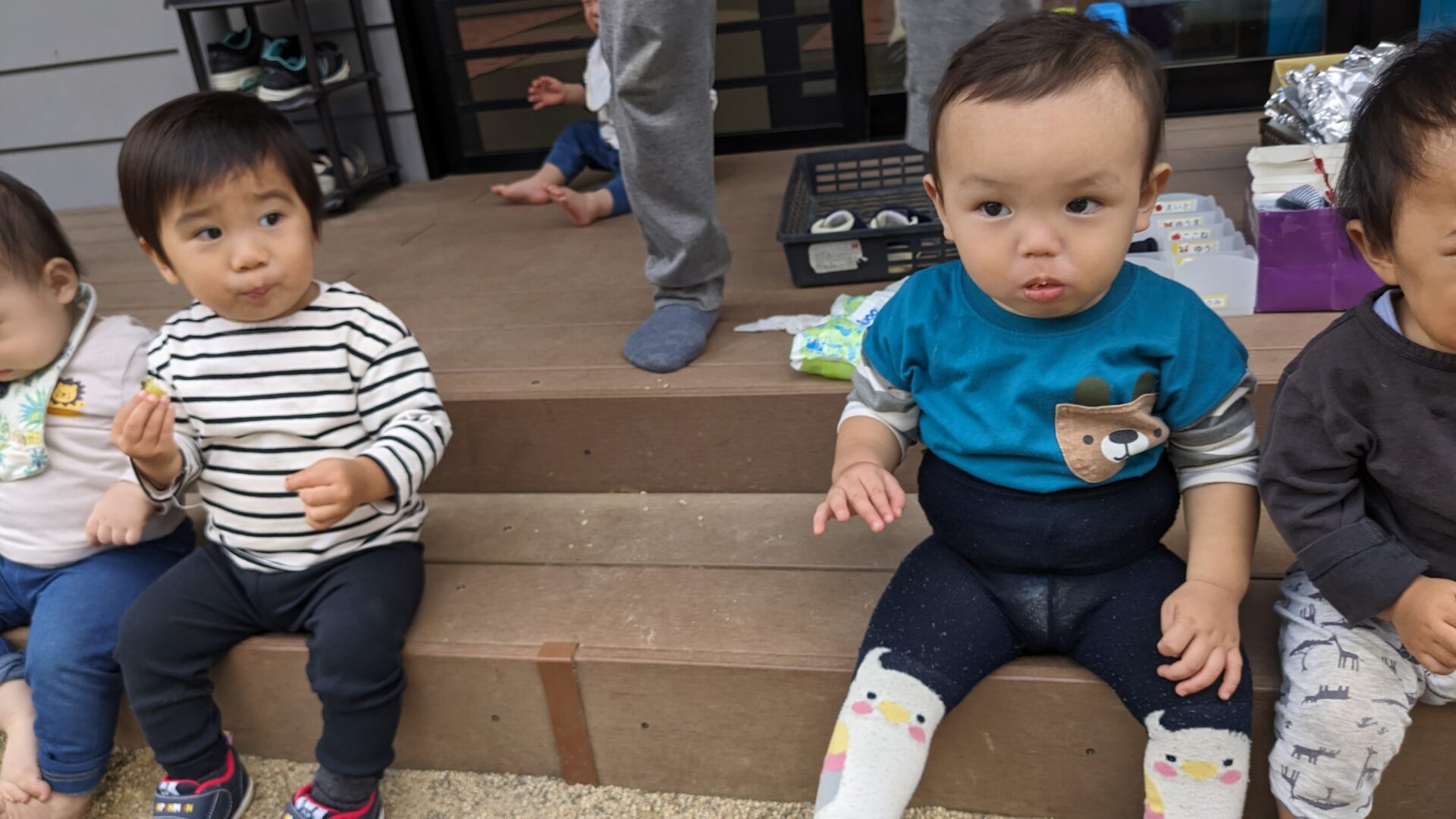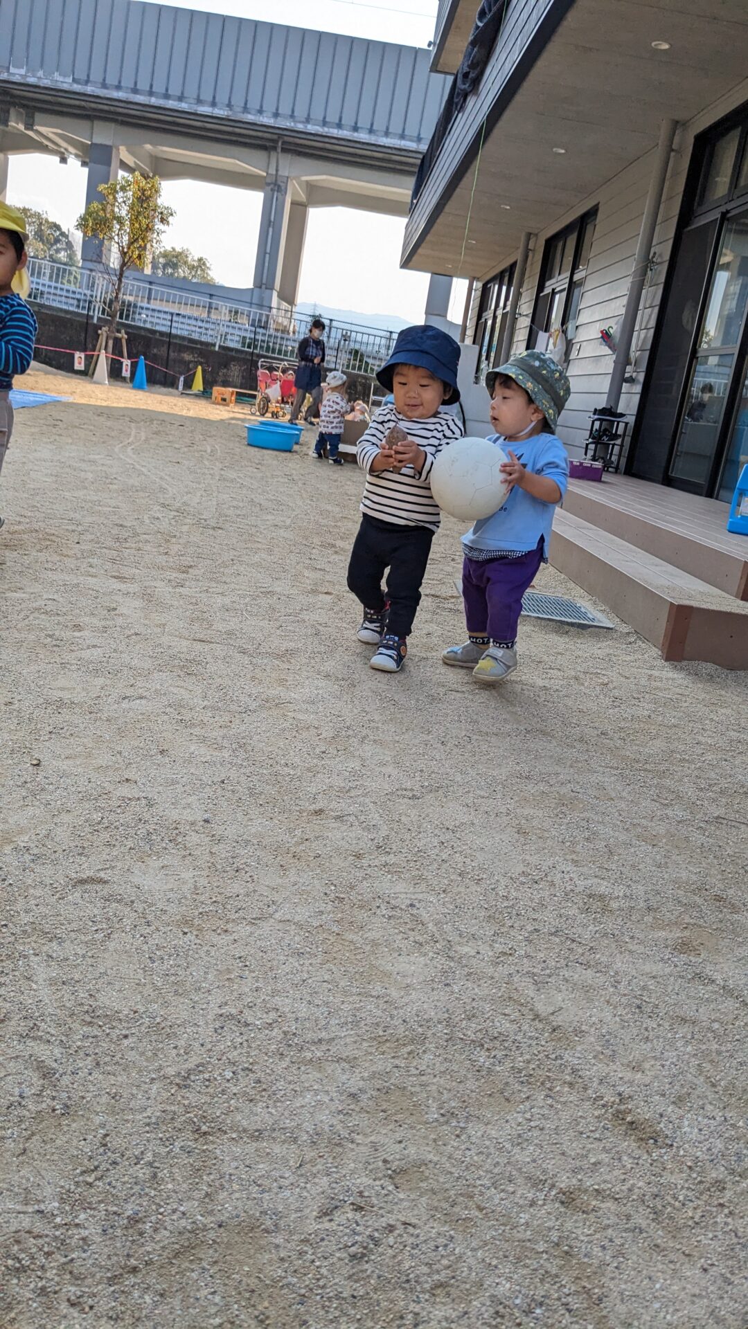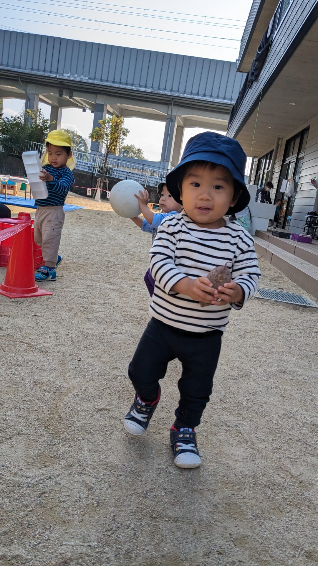 これは何だ!!??と中の物を両手に持って友だちに見せたり、保育者のところに持ってみたり…
