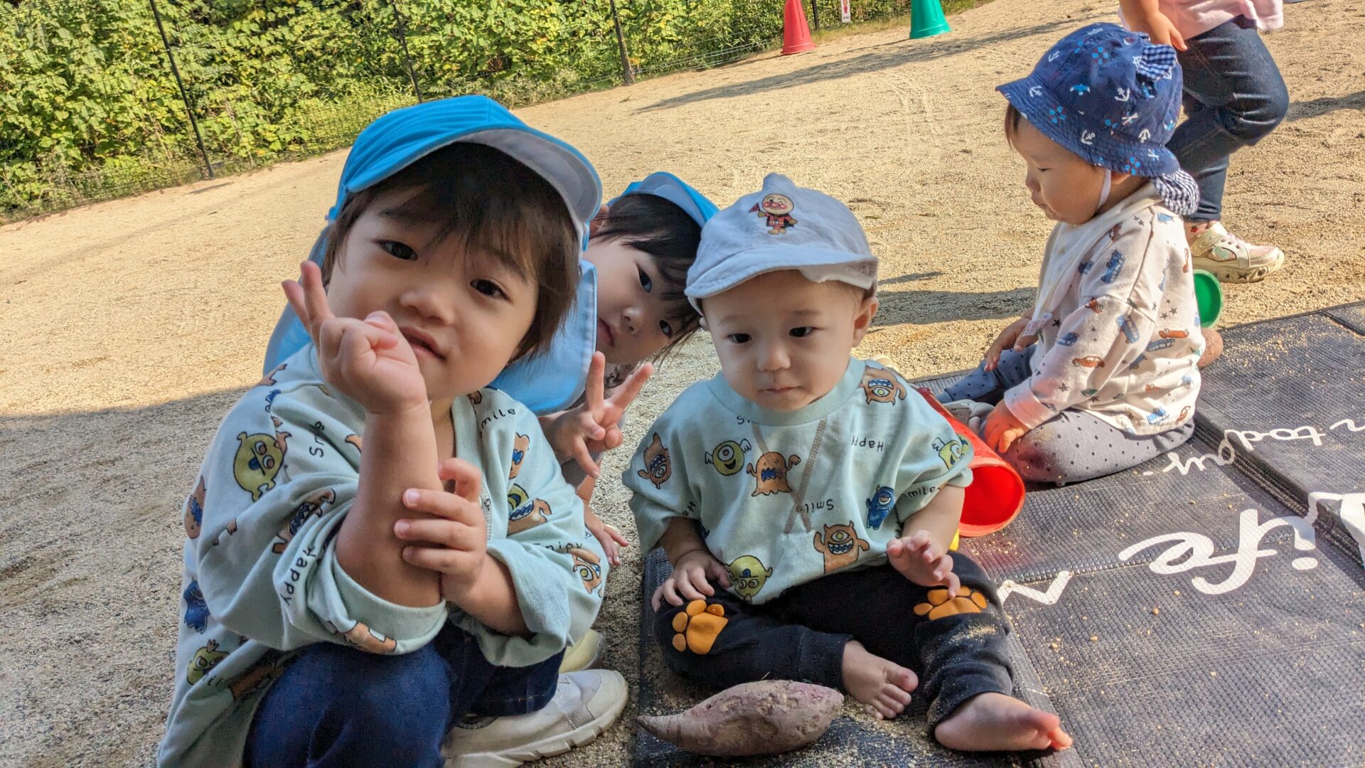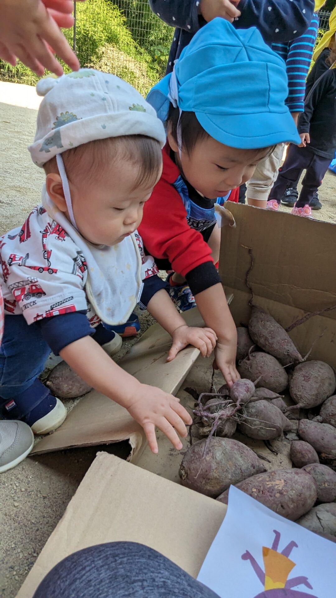 「これはね~さつま芋🍠」「私たちが掘ったんだよ」「これはまだ食べちゃダメ~」