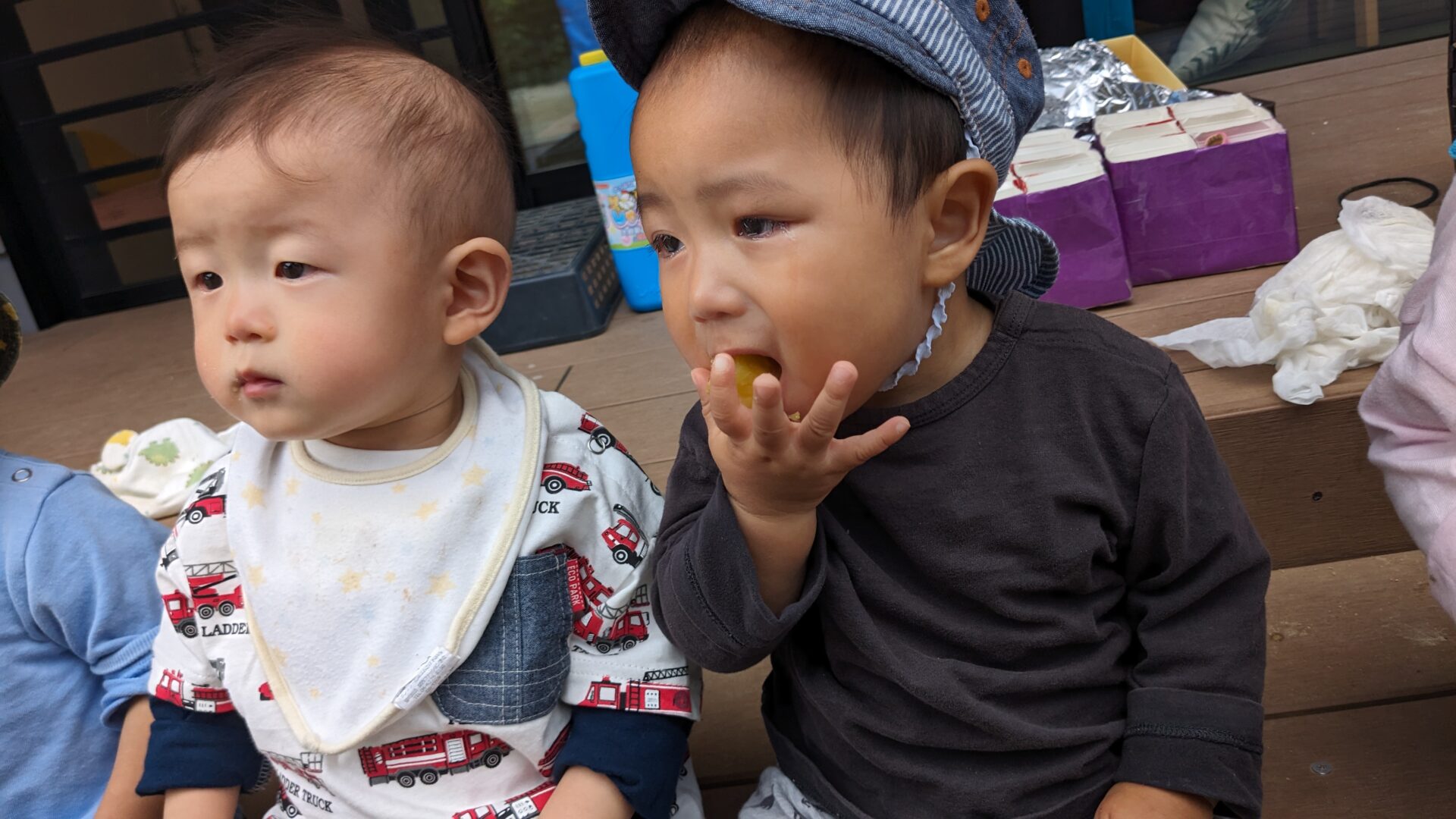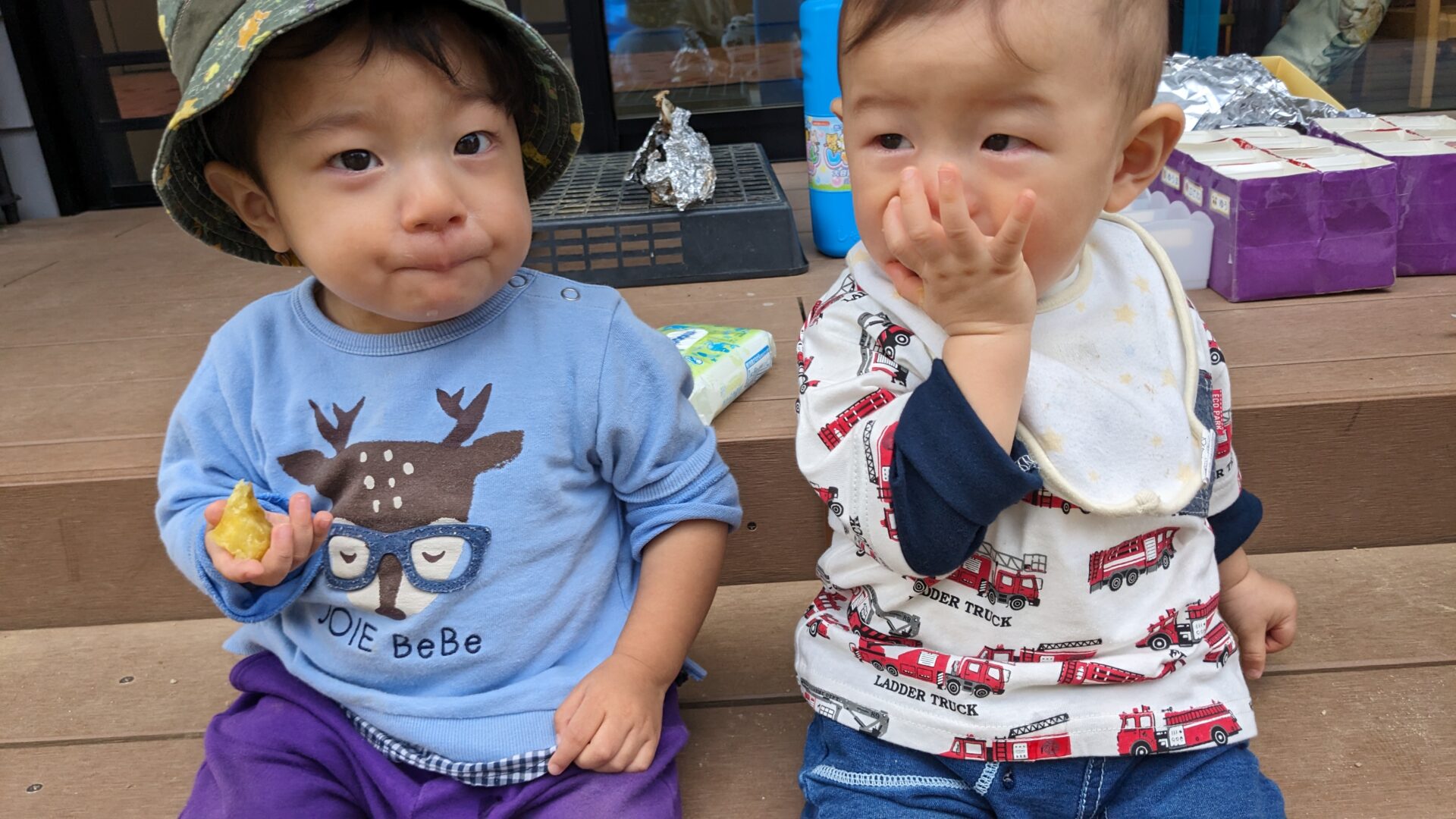 焼きたてのさつま芋をうみチームもおすそ分けしてもらい1口づつパクリ💓