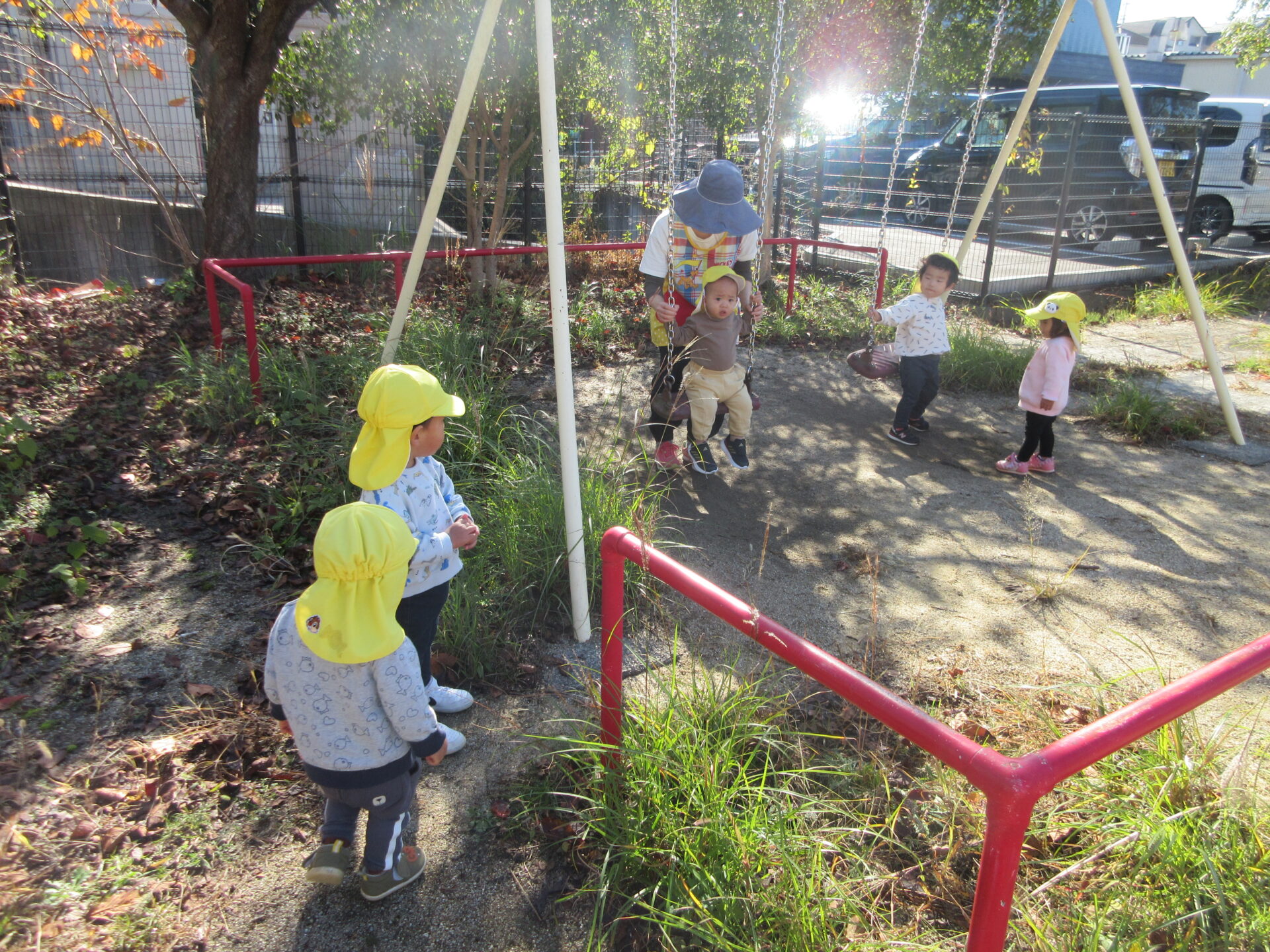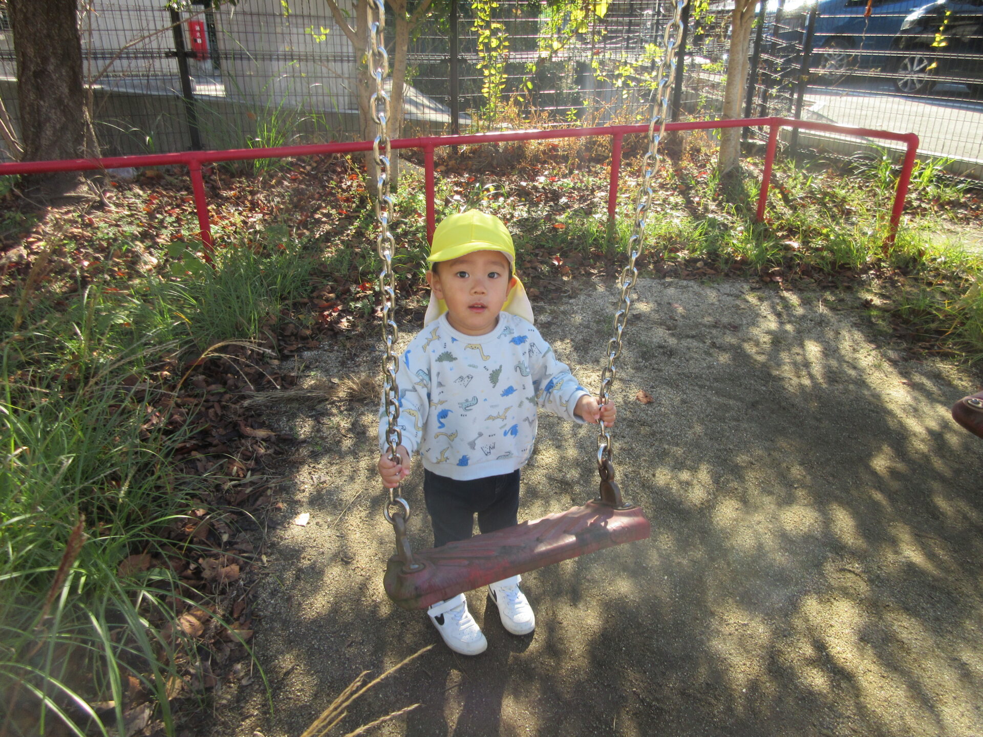 公園に着くと、元気いっぱいに走りだしブランコに乗ったり、草木をが茂っている場所に探検したりして興味のあるものを見つけて遊び始めていました。