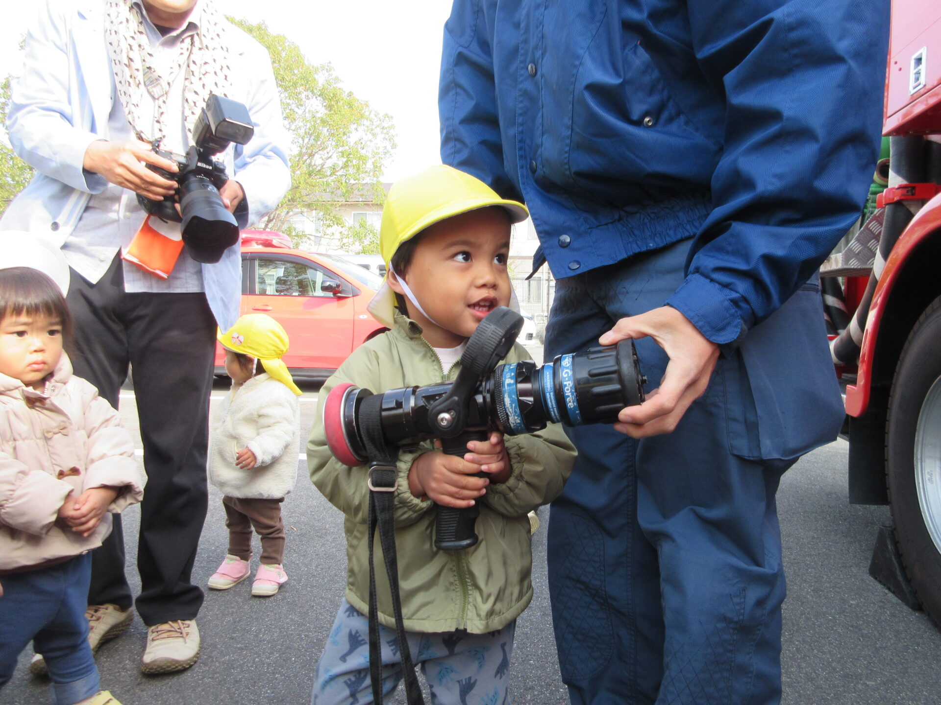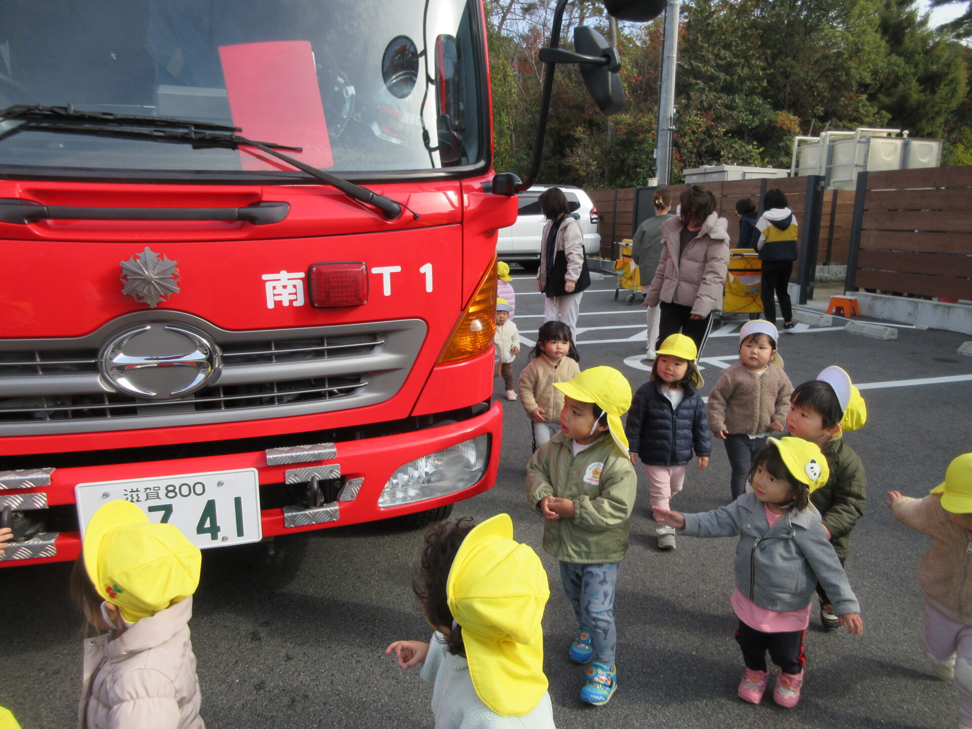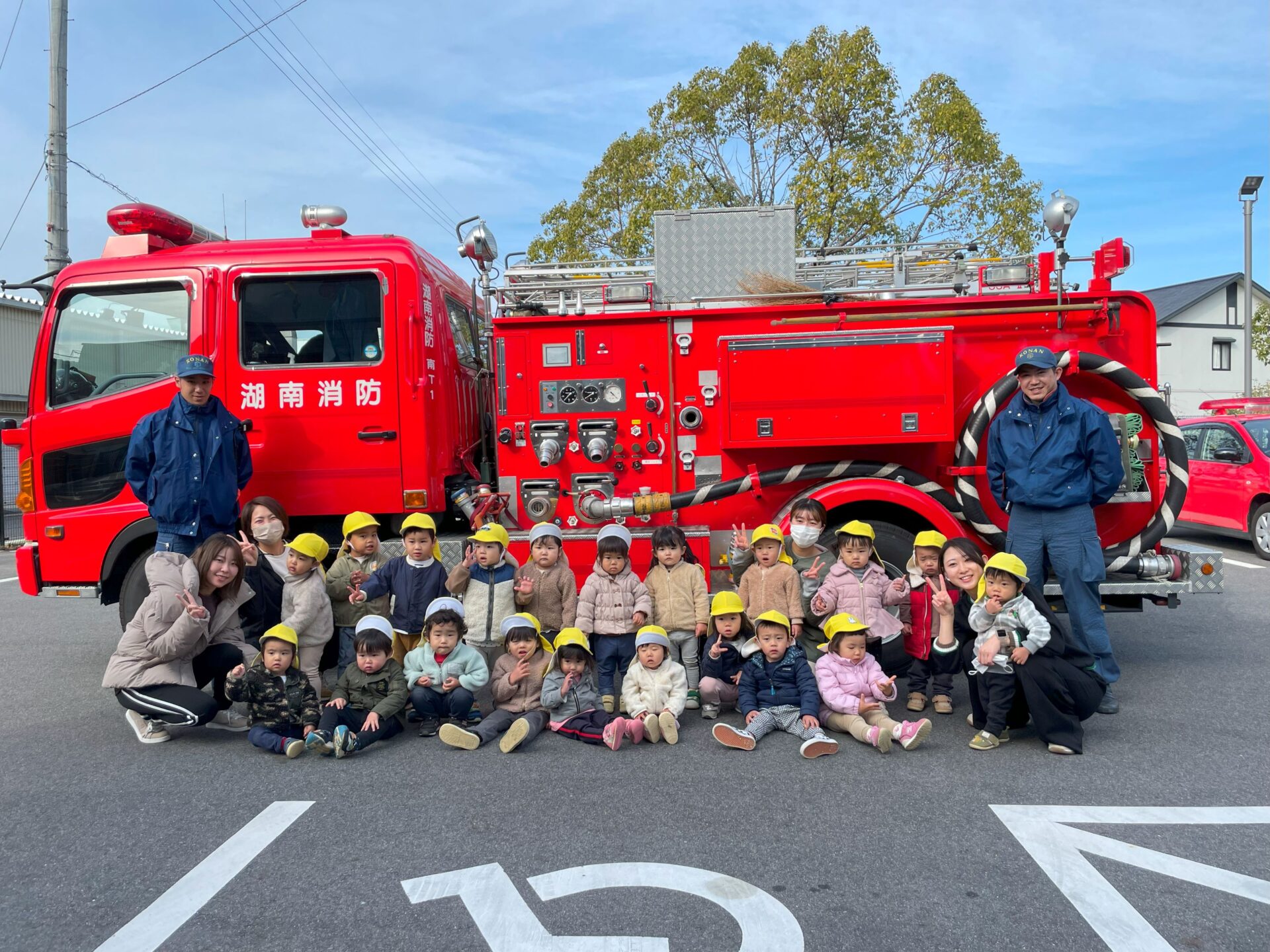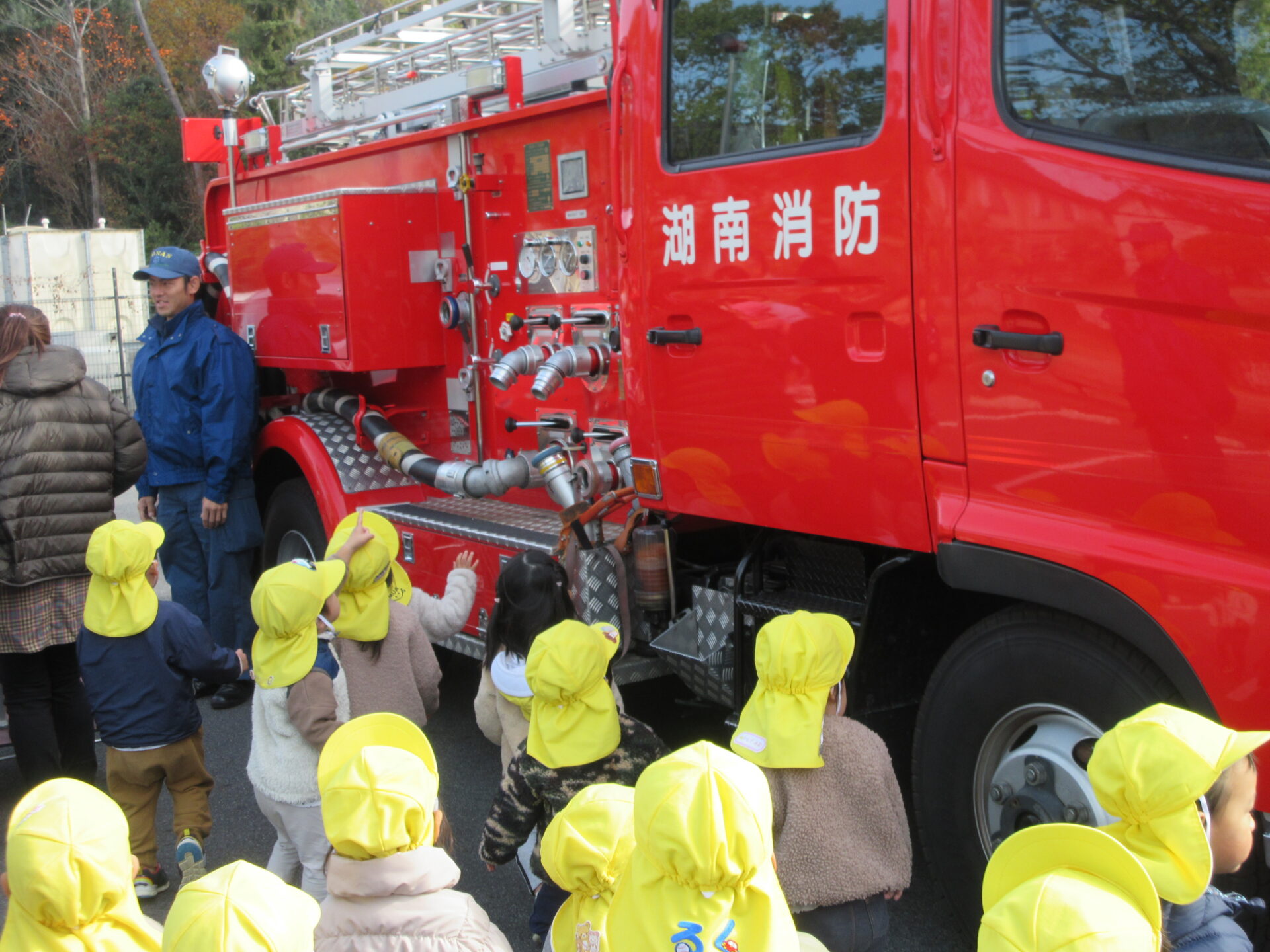 大きくてかっこいい消防車を目の前に子どもたちの目がキラキラ輝いていました🌟