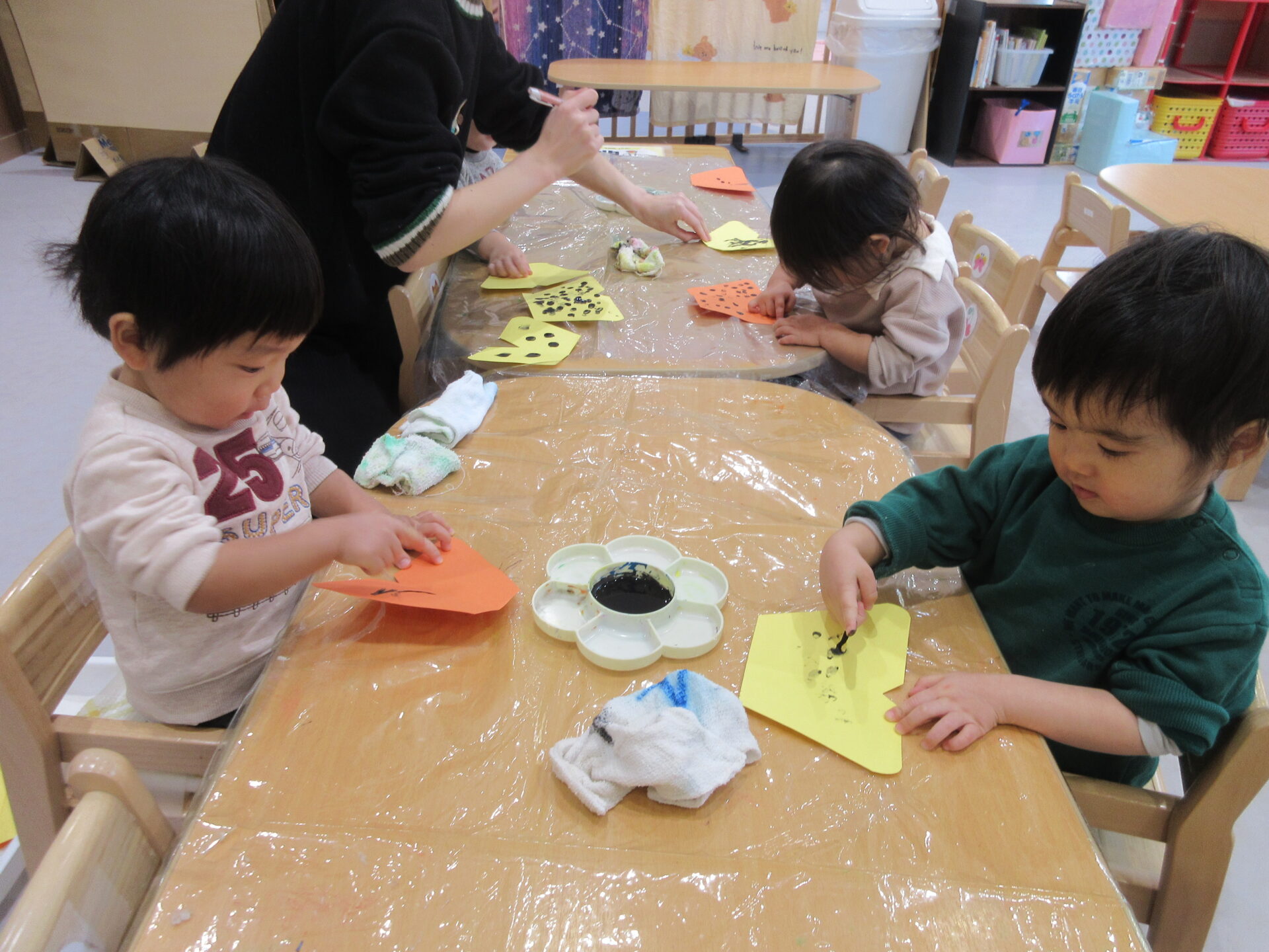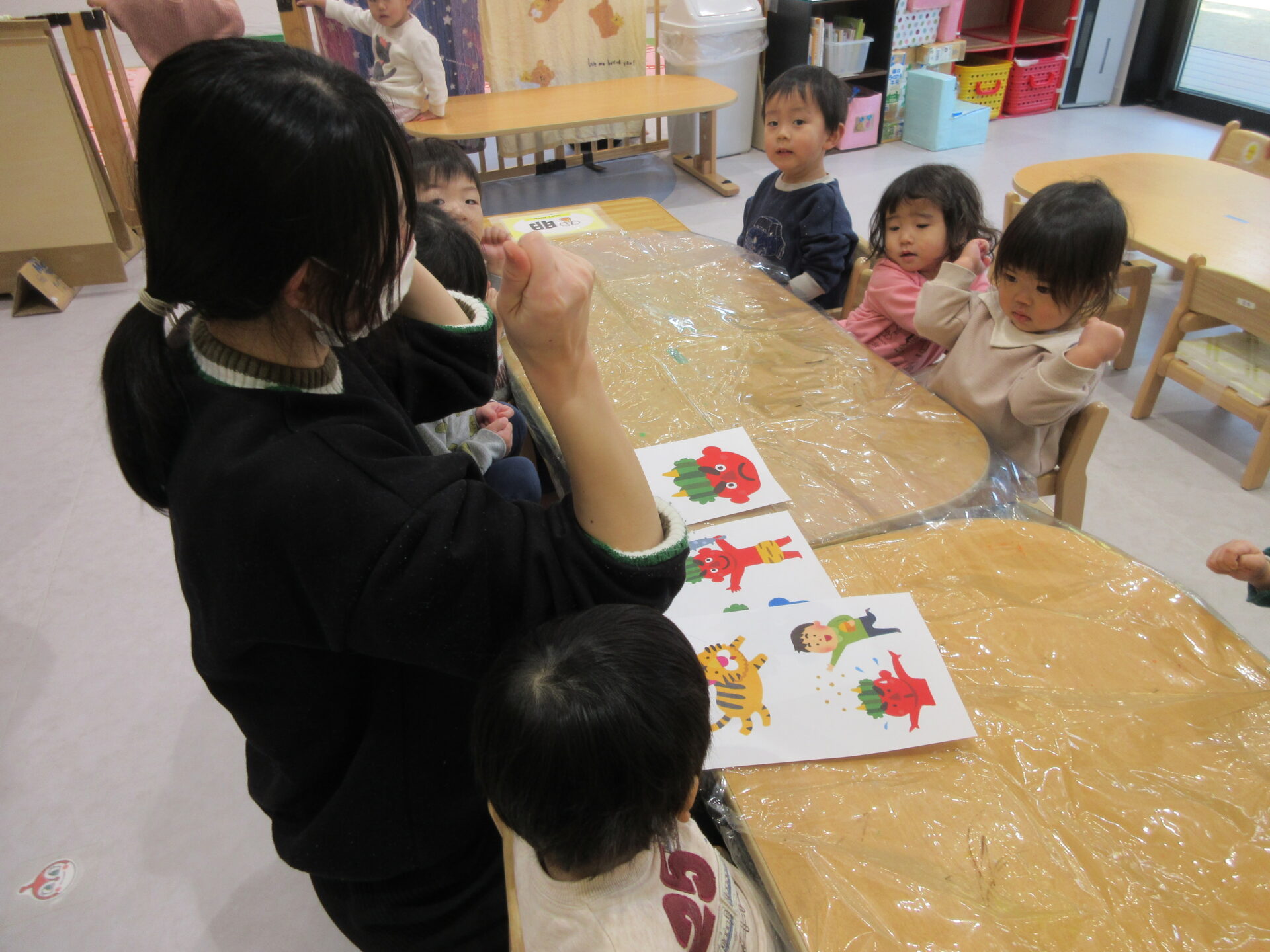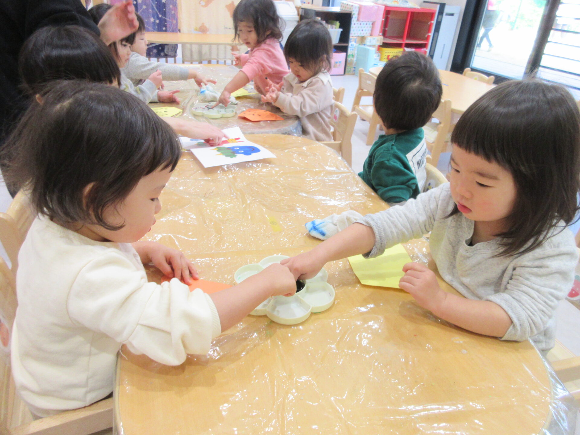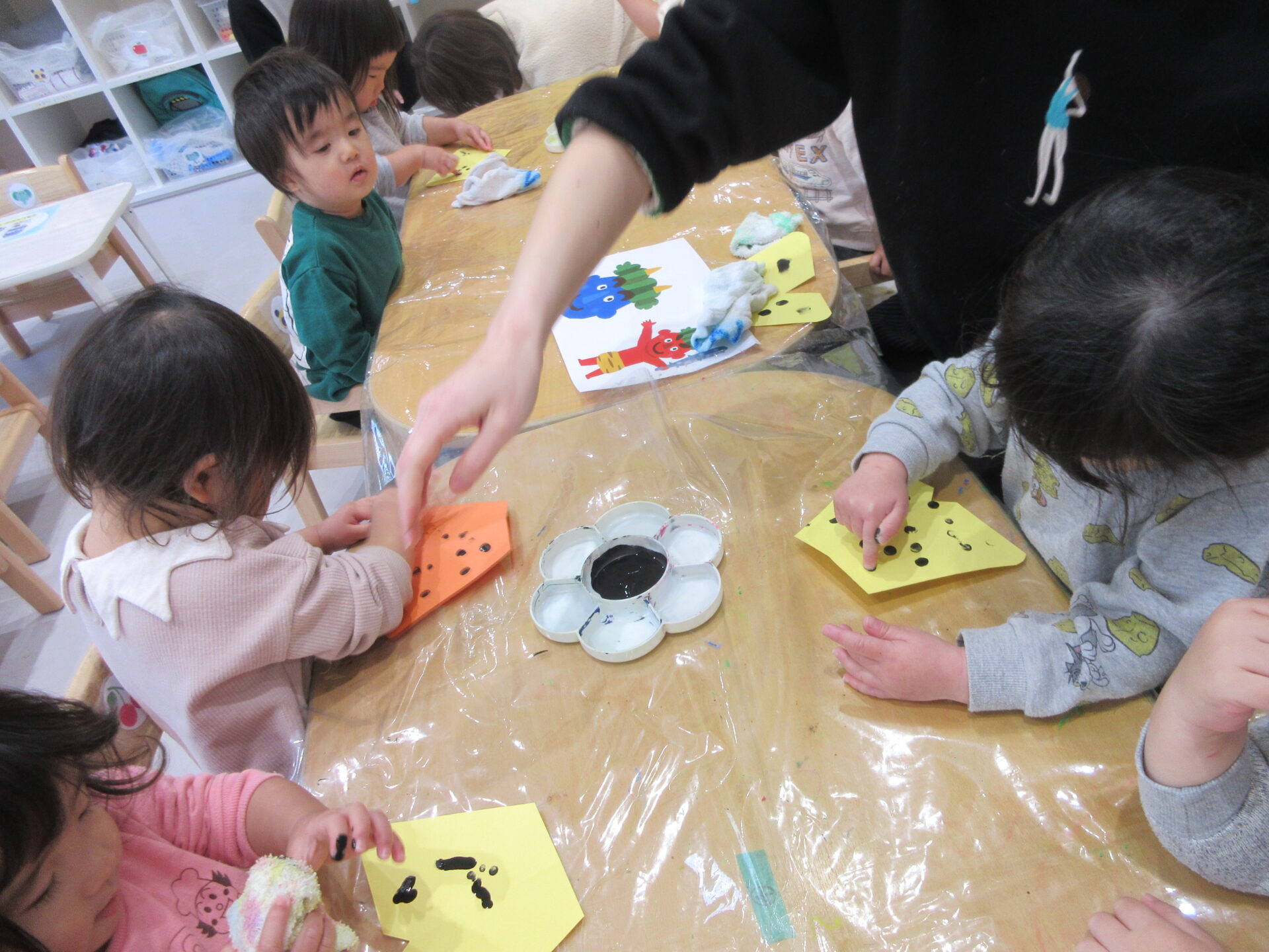 ペタペタと絵の具がつくのが不思議な様子でした😊