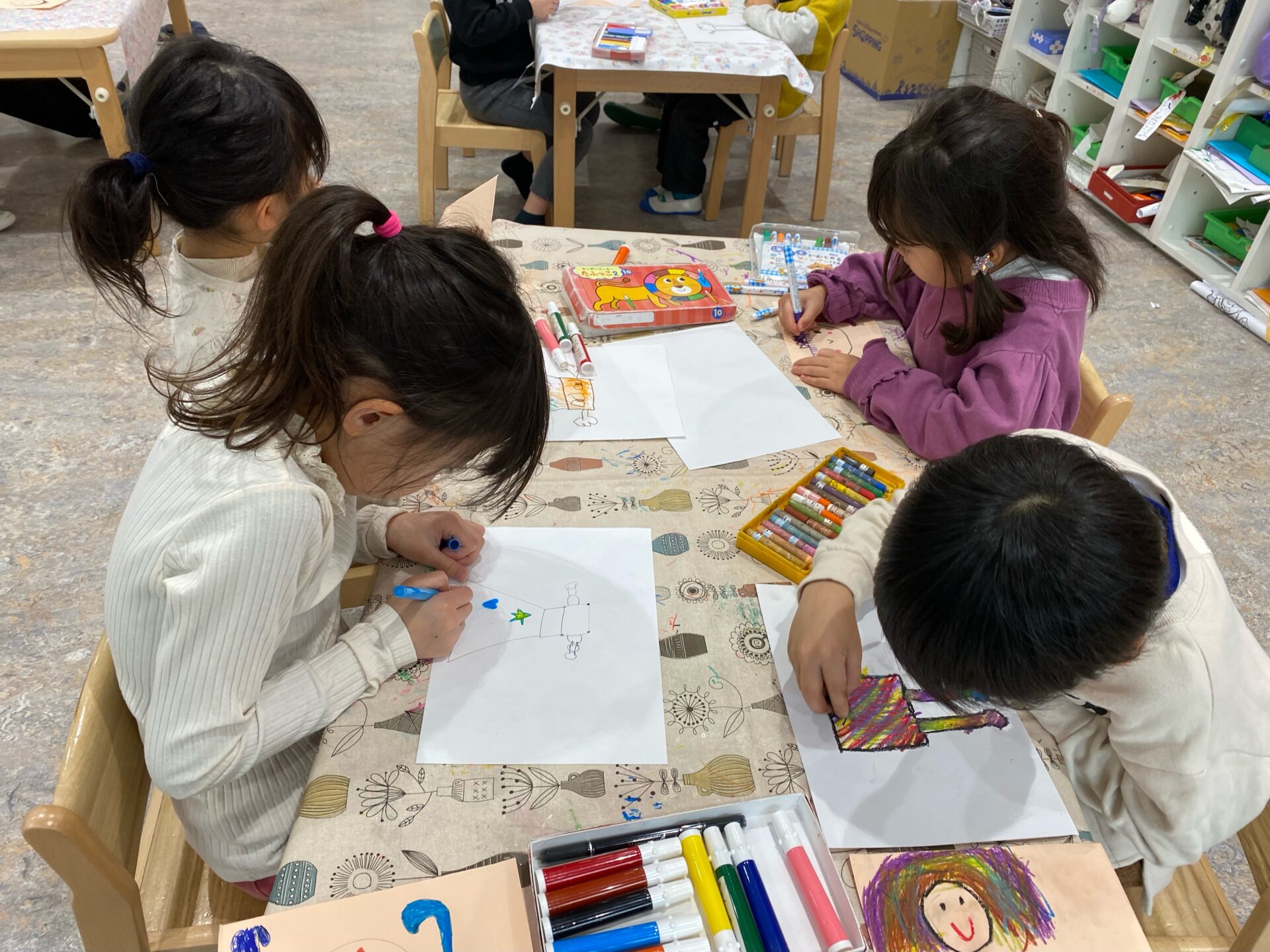 体には手と、足と、、、、、、と考えながら丁寧に描く子ども達!