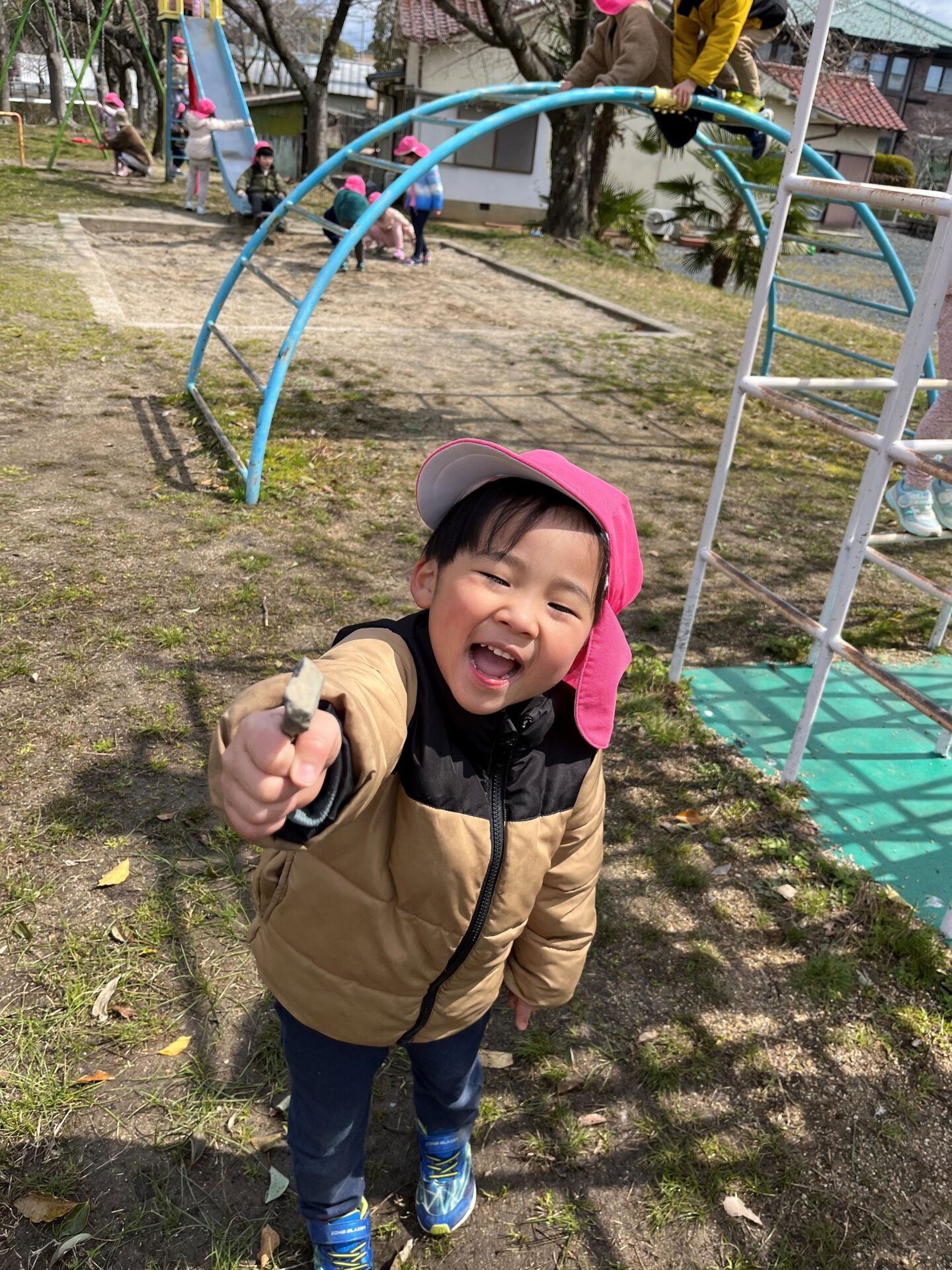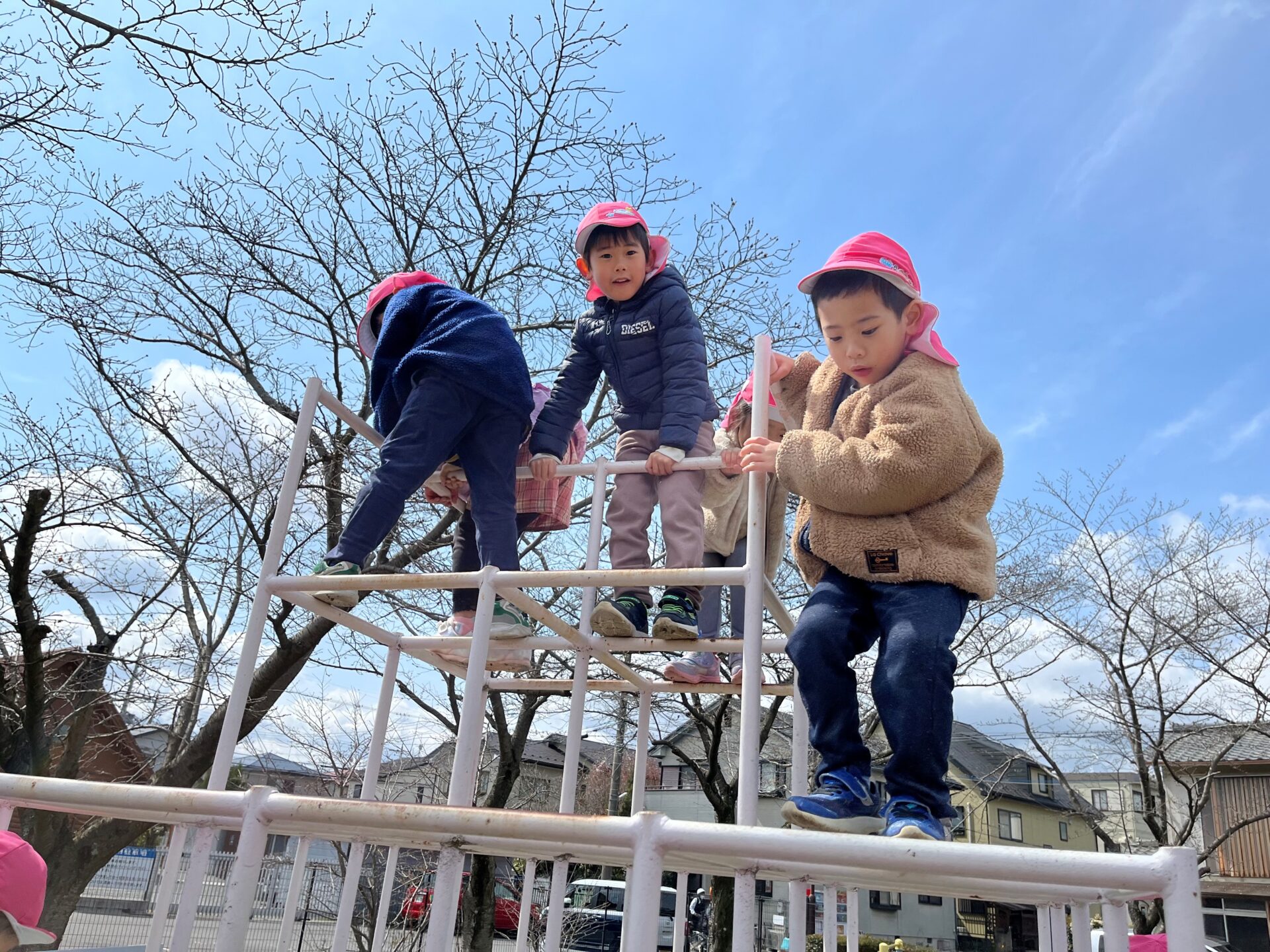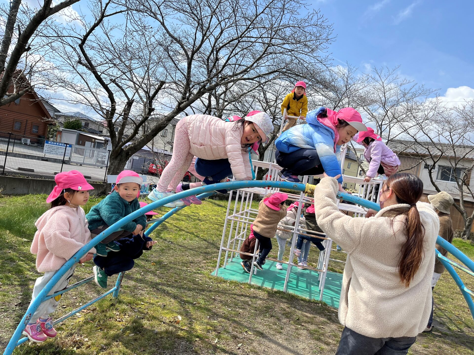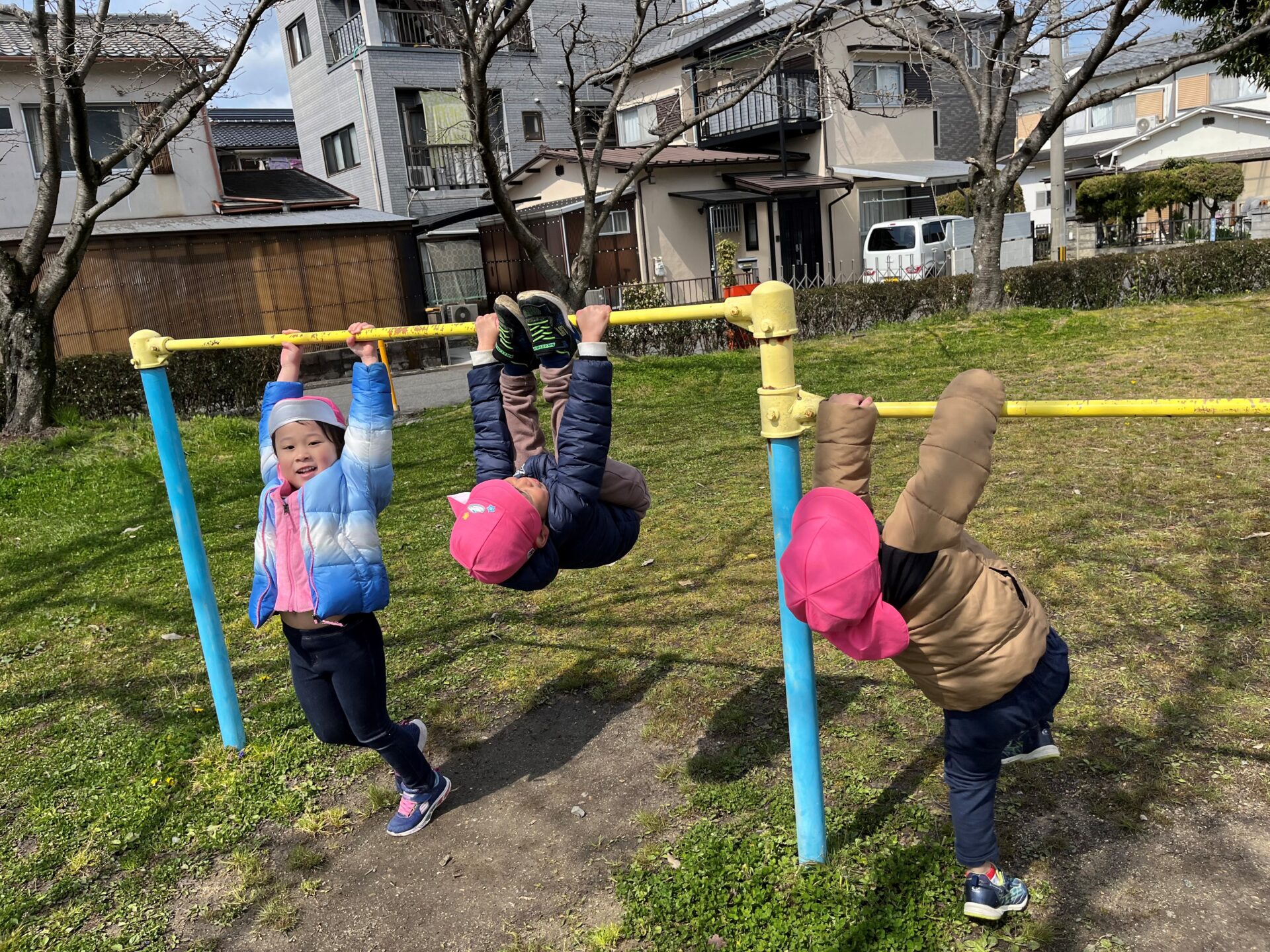 野上公園に着くと、ジャングルジムや滑り台、鉄棒などたくさんの遊具に大はしゃぎの子ども達♪