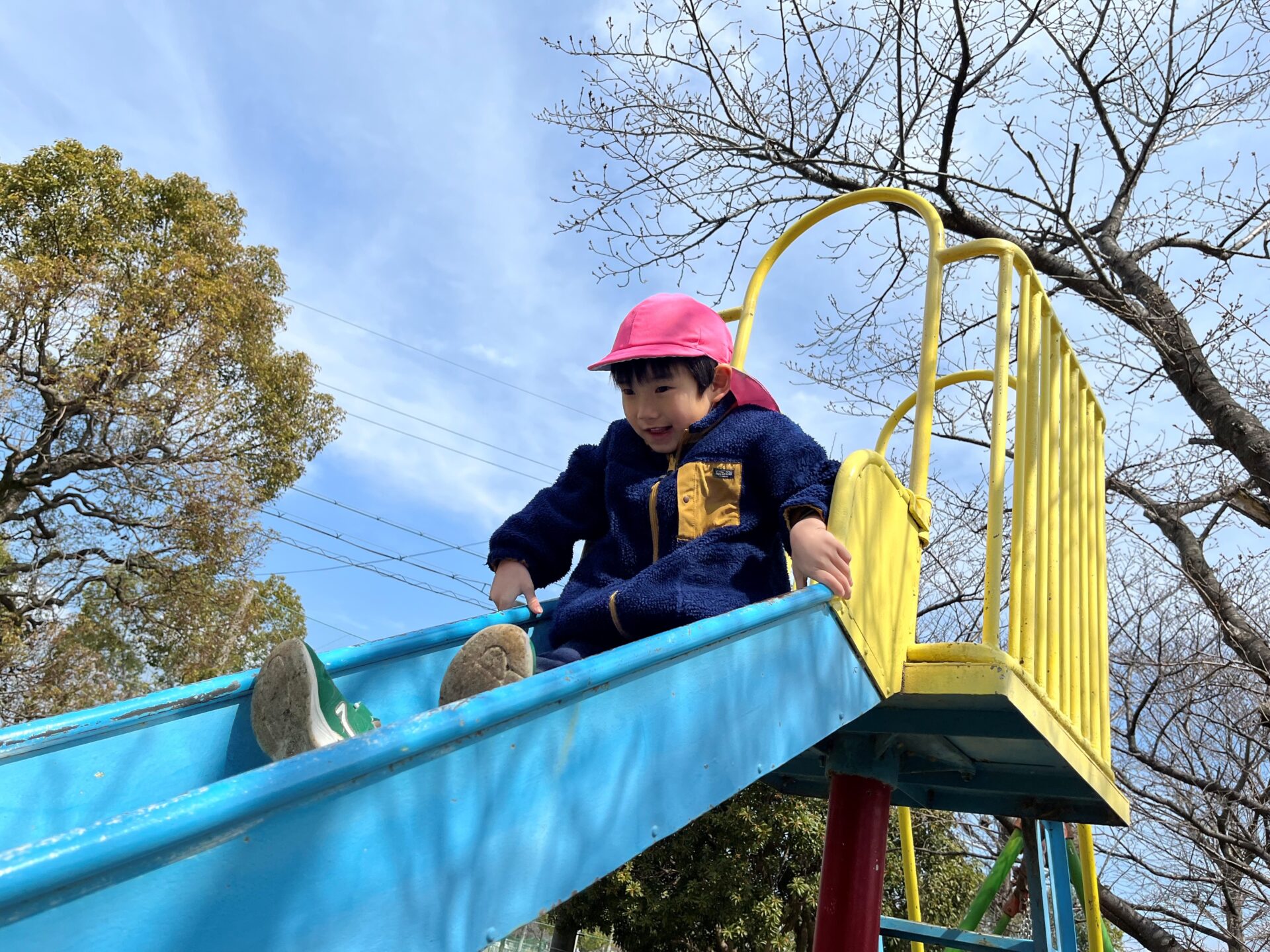 「きゃー!!」と言いながらすべり台を滑っている子