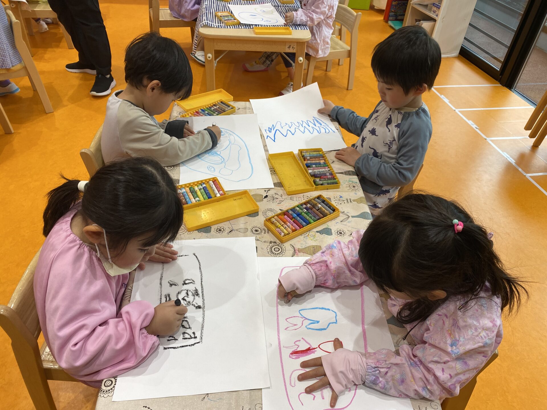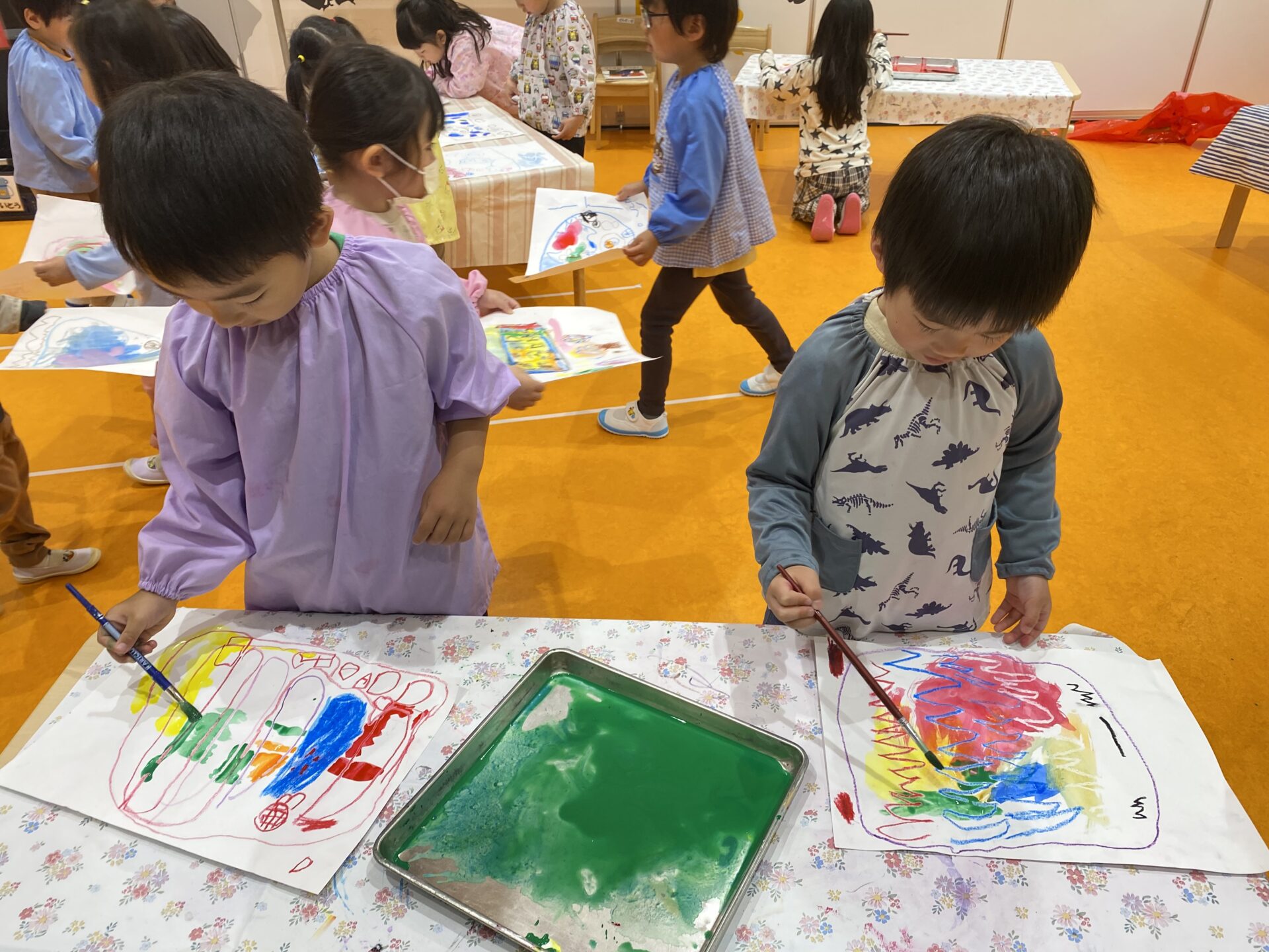 クレヨンで描いたところは絵の具がはじいて、「すごーい!!色出てきた!」とお話する姿のありました!✨✨✨✨