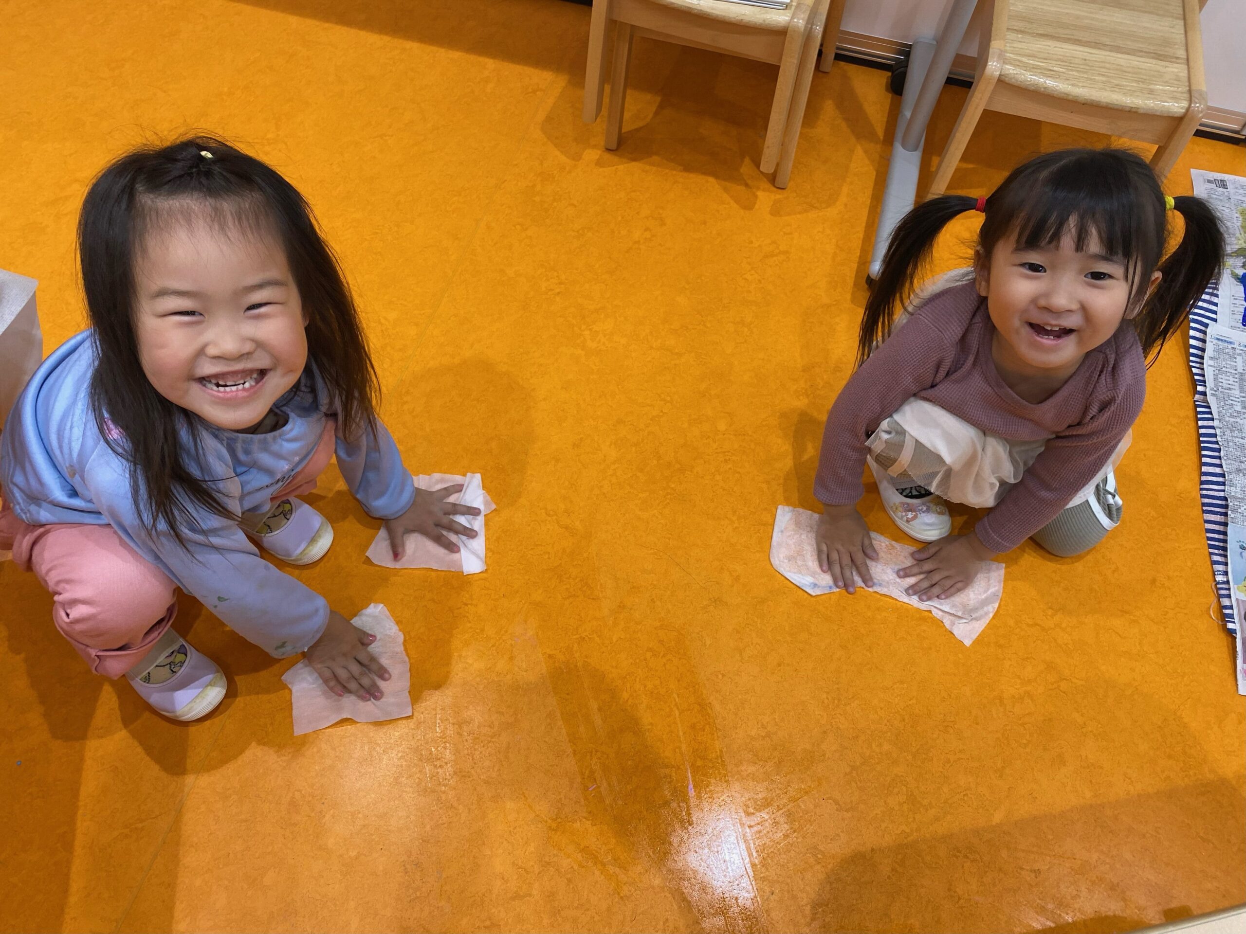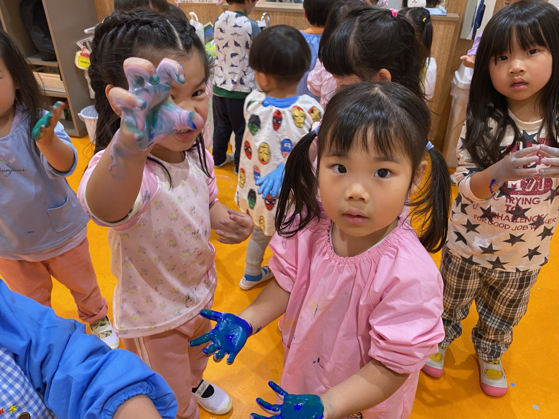 友だちが、「手形したい!」と手形をして遊んでいると、クラスの皆も「やりたい!」と輪が広がり、一緒に楽しんでいました!✨✨