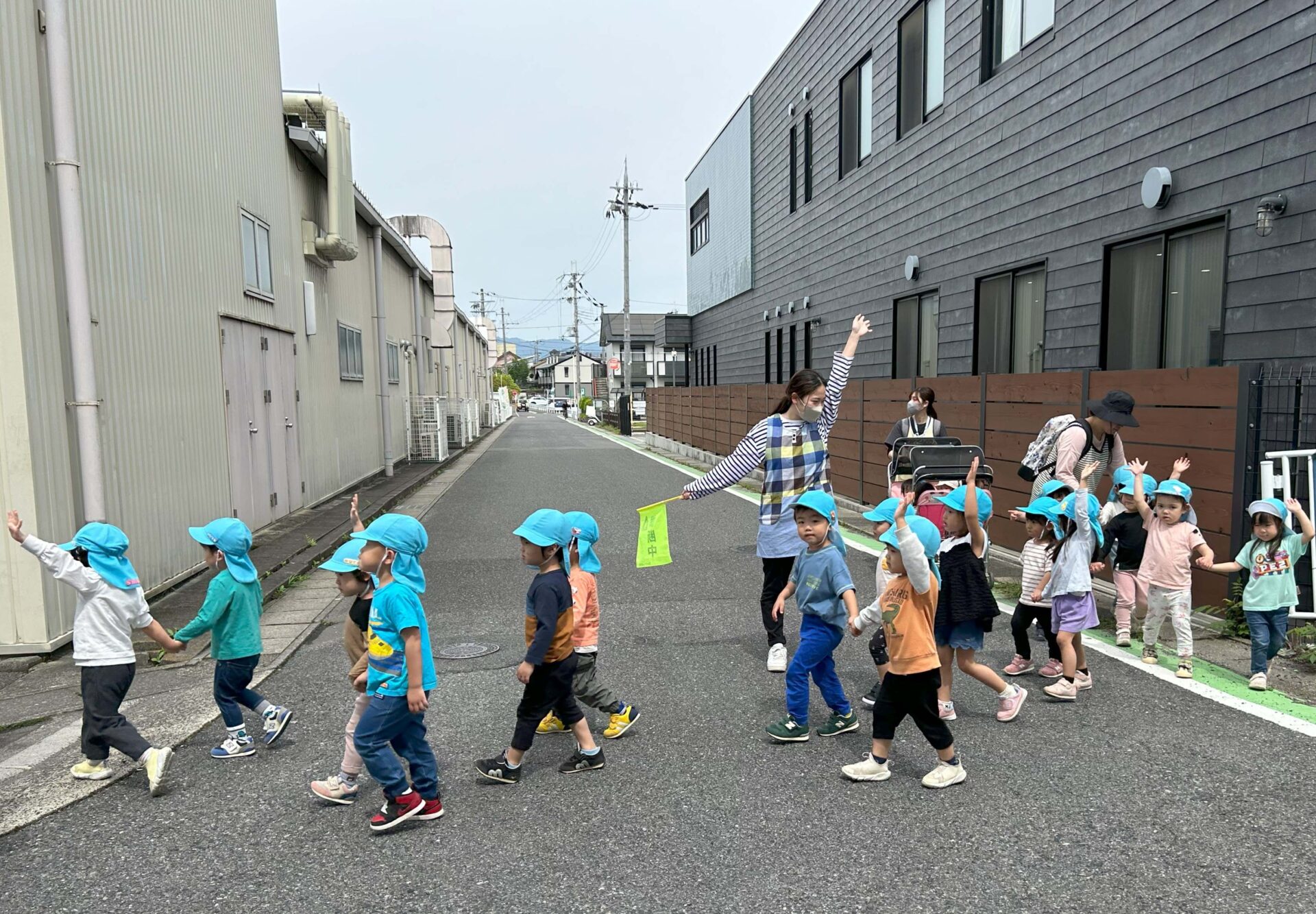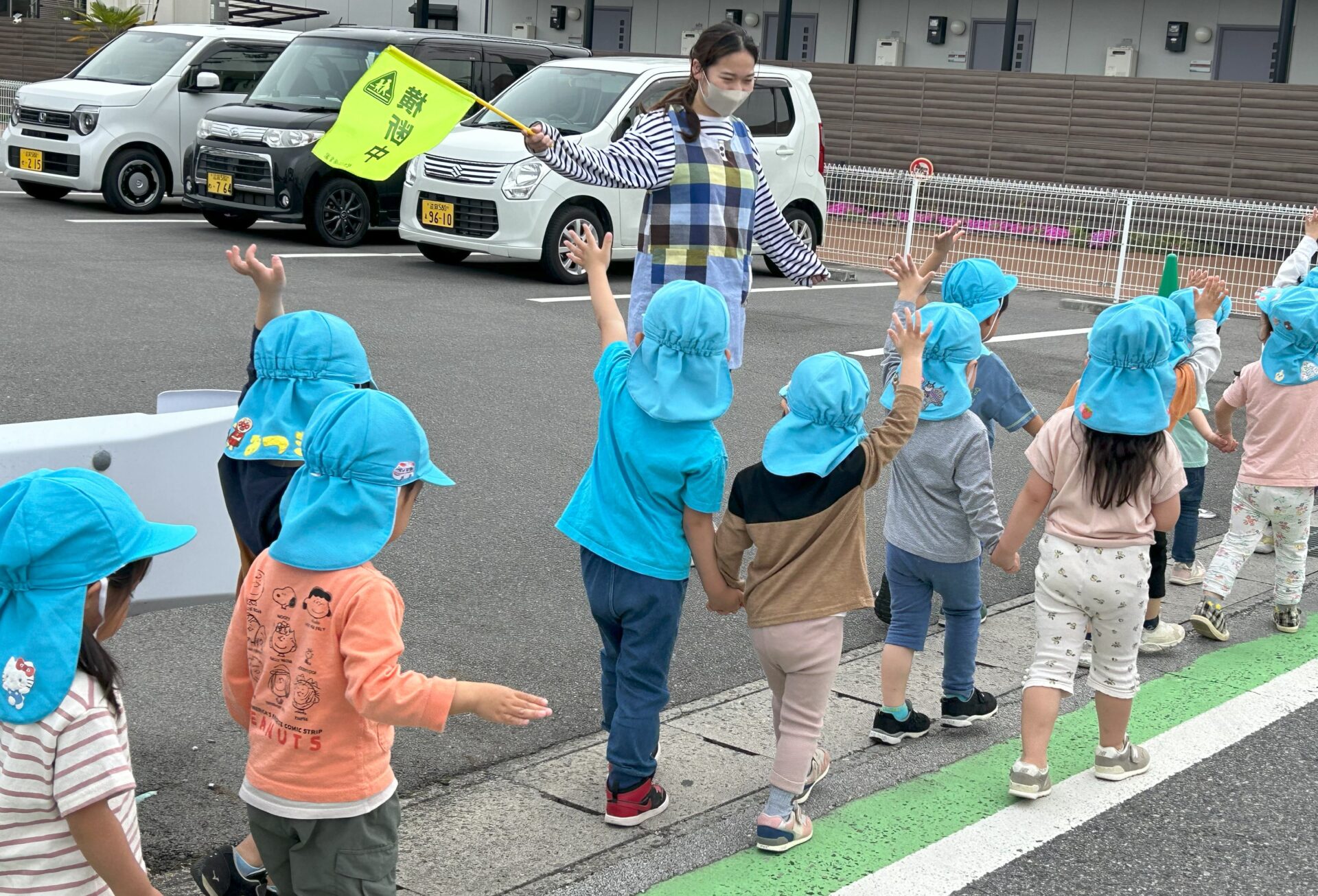 お友だちの手を離さないで仲良く歩こうね。