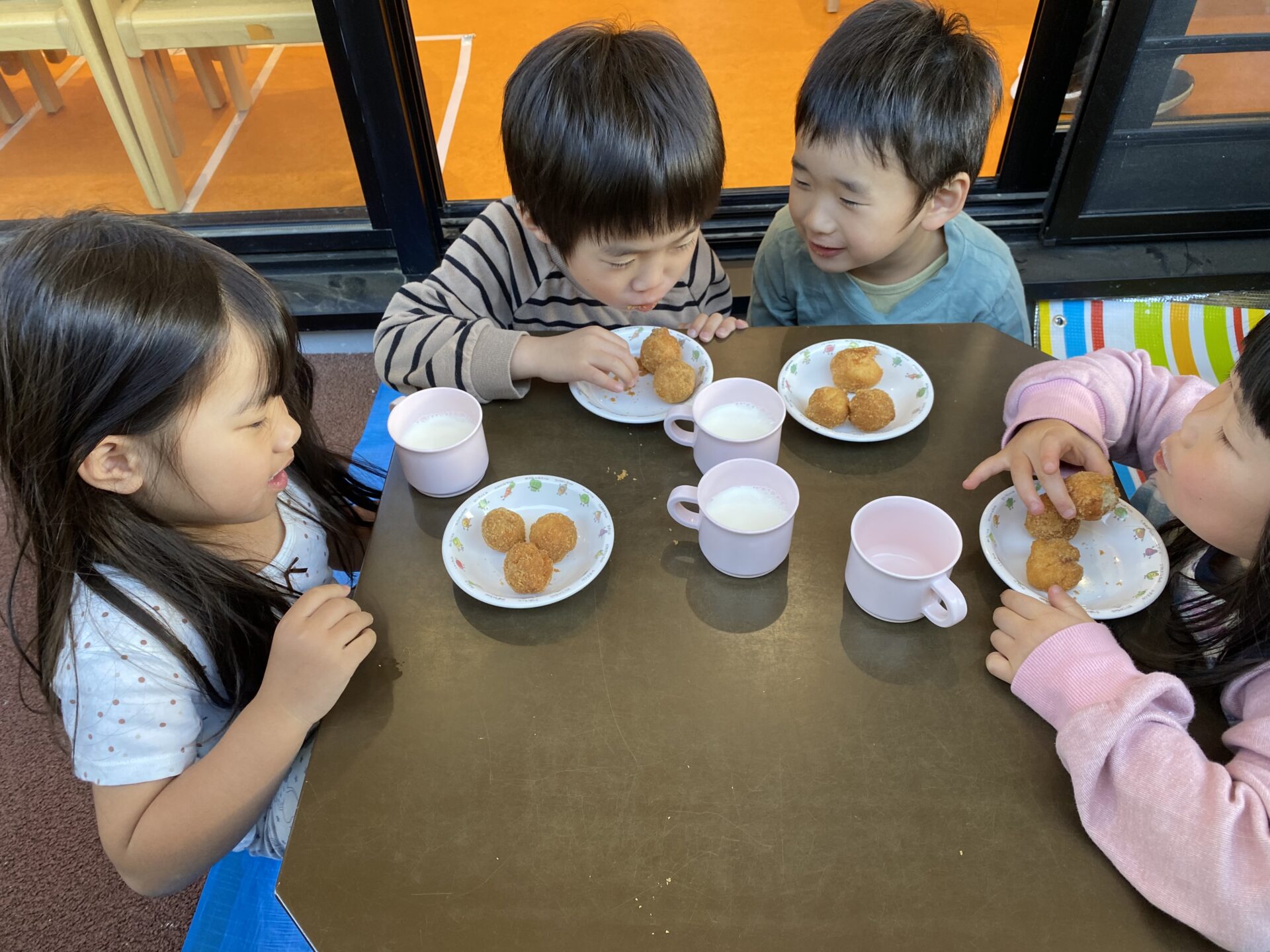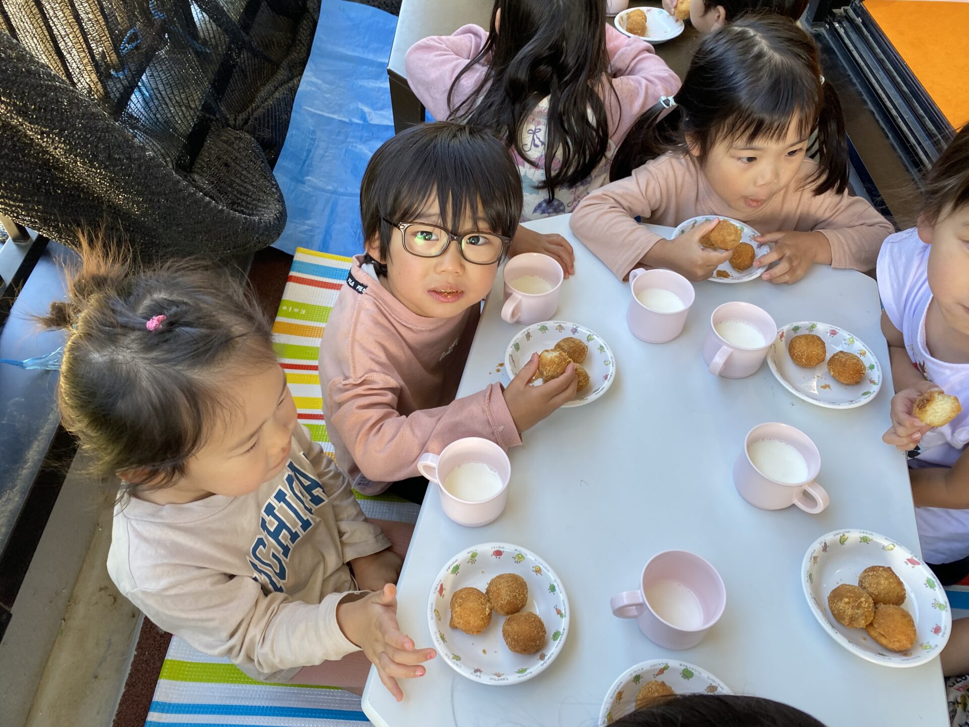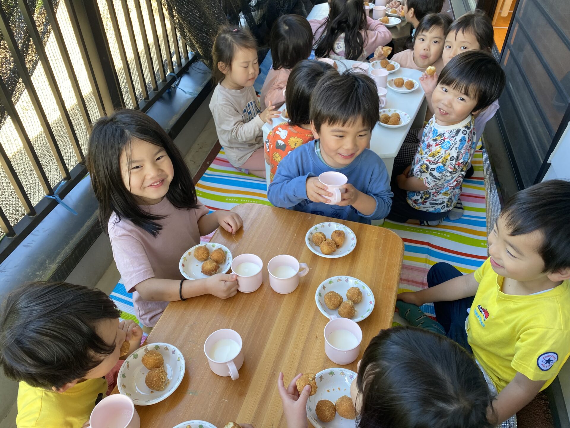 一人のお友だちが「風気持ちいい~!テラスでおやつを食べたい!!」とお話してくれ、テラスでおやつを食べました!!!