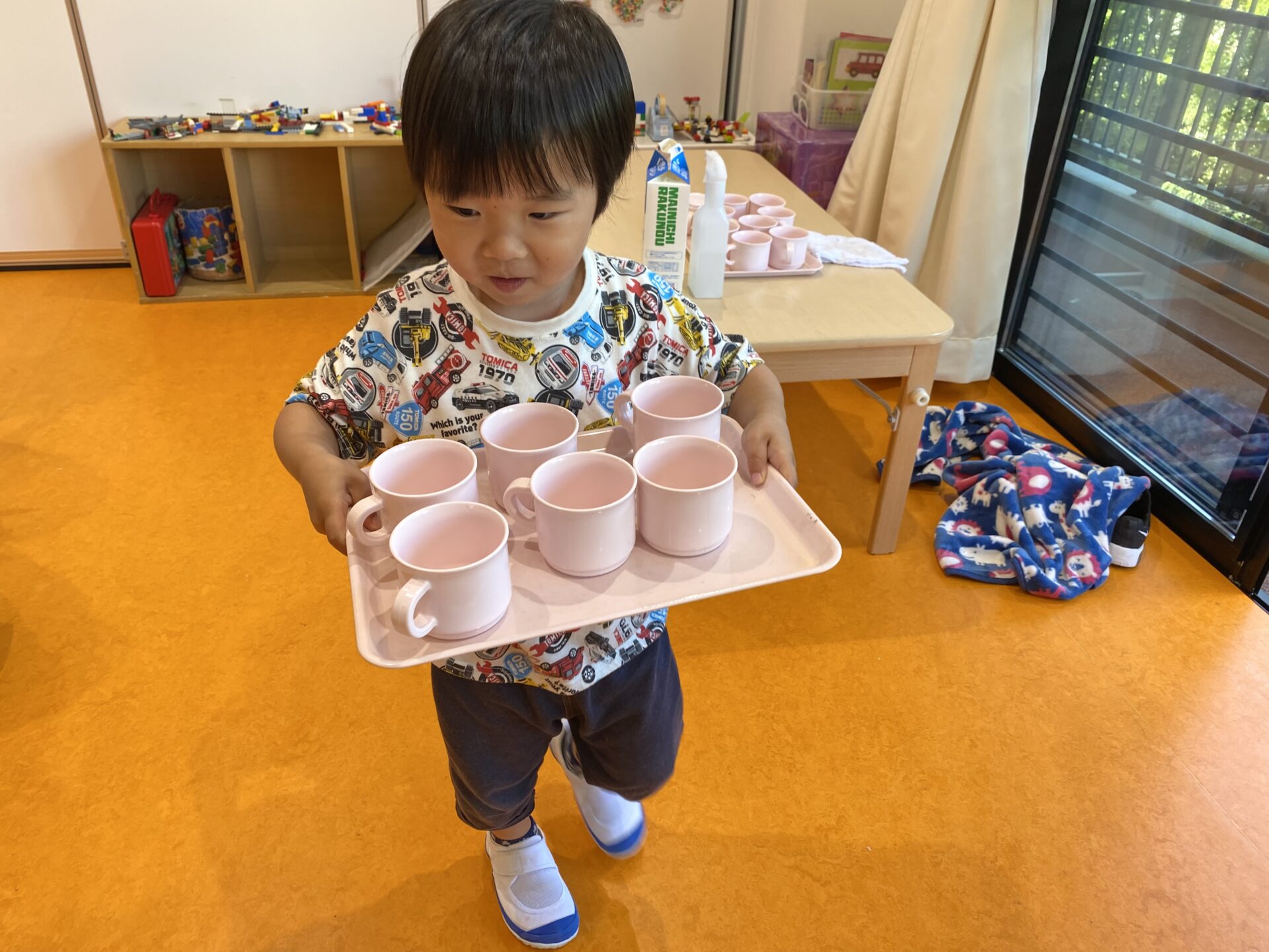 コップを運んだり
