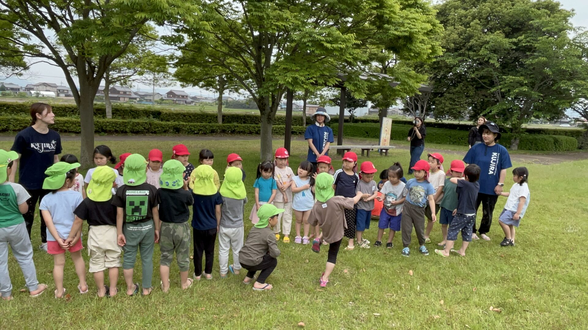 田植えの後は、姉妹園、琵琶湖くじら保育園のお友だちとの交流。
