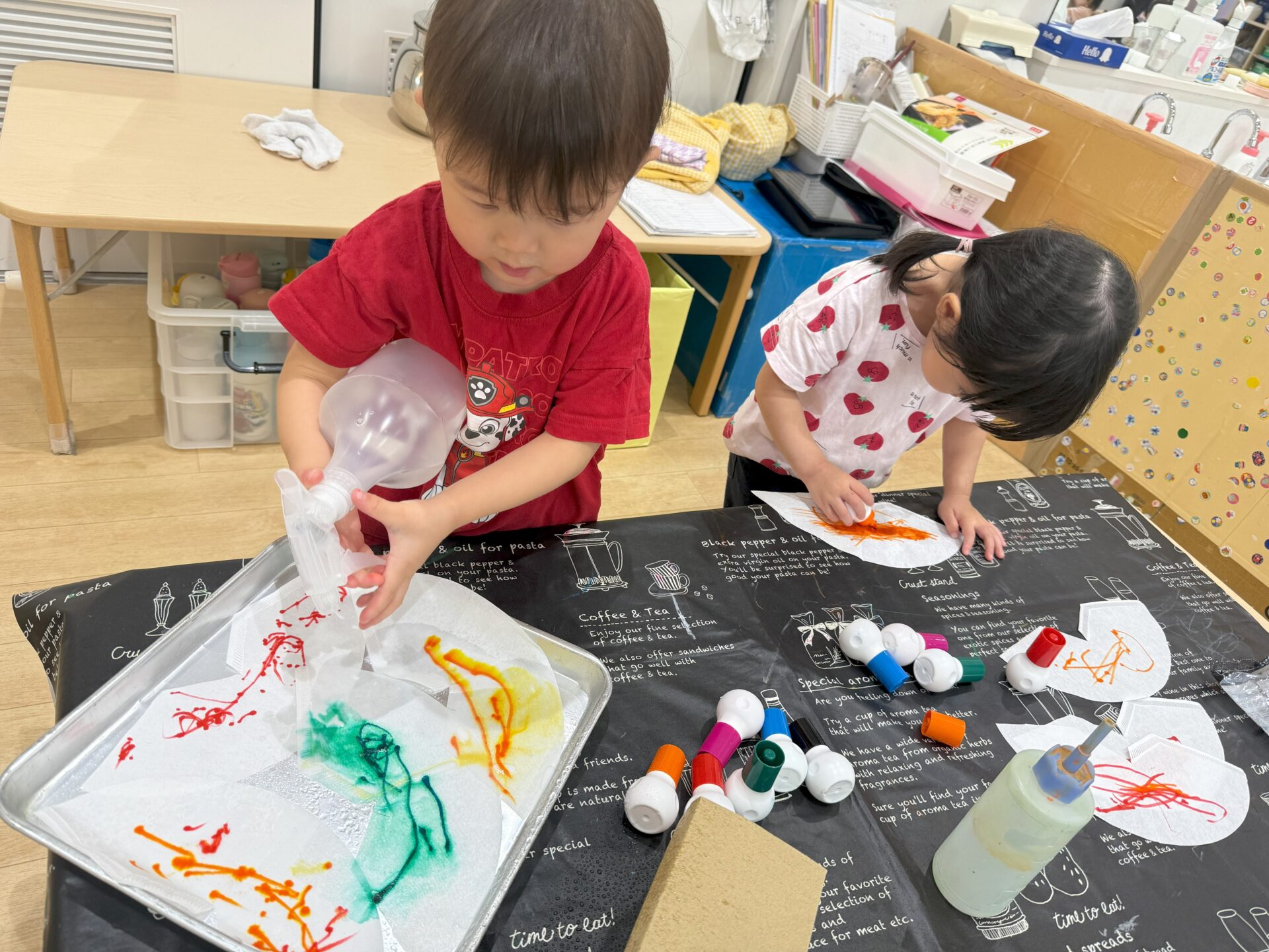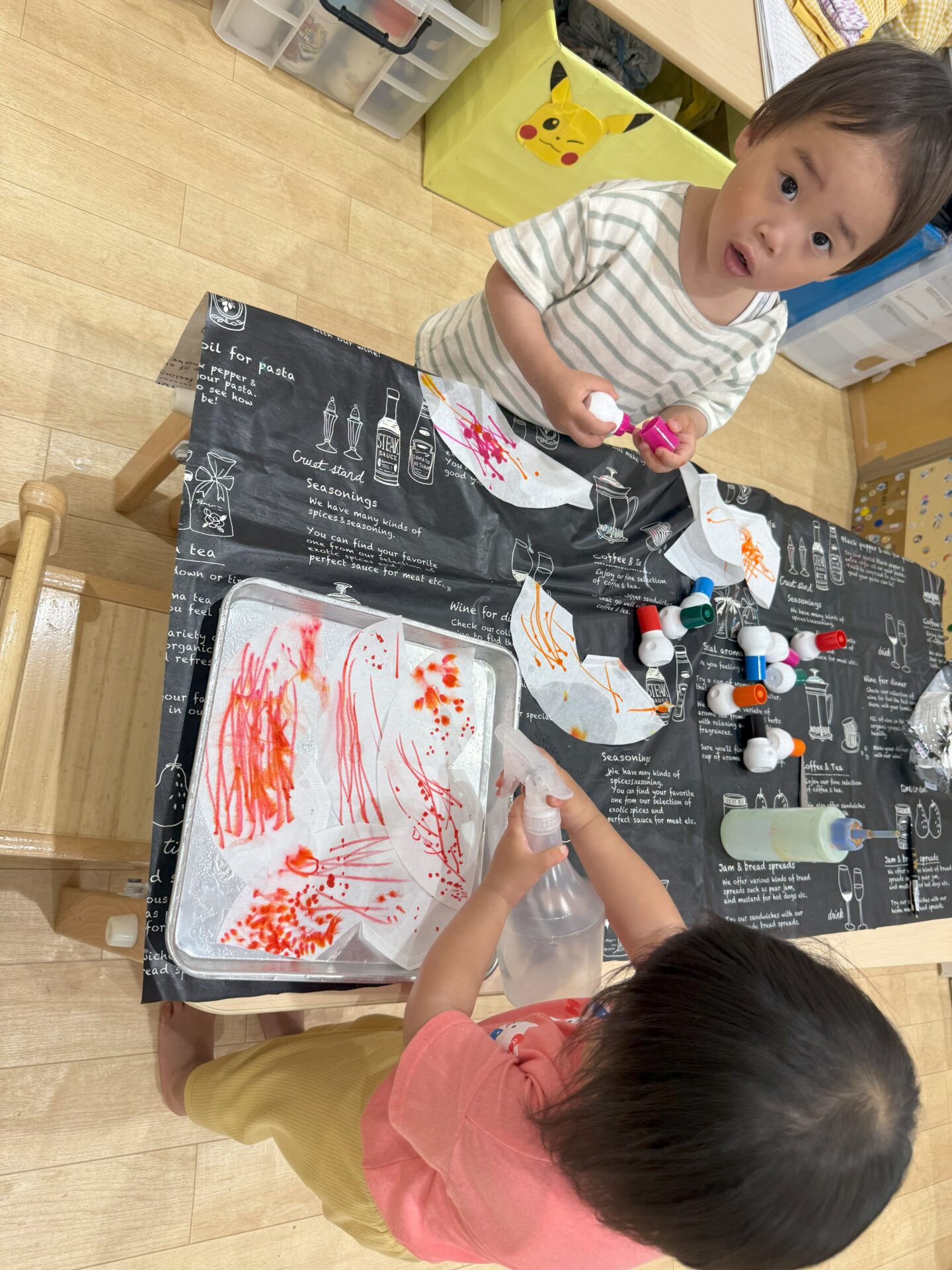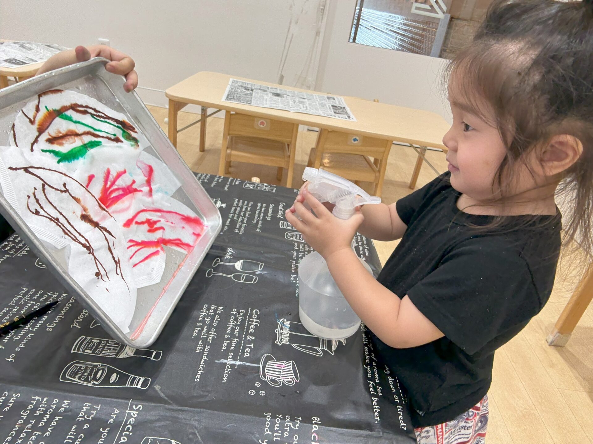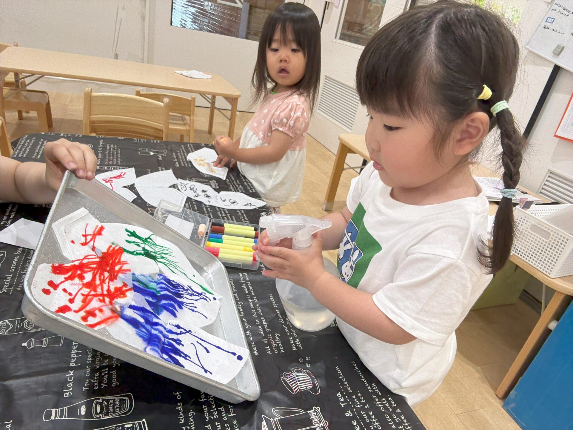 友だちの作品を見て「わたしもやりたい!!」と滲み絵を楽しんだあめチームです💧