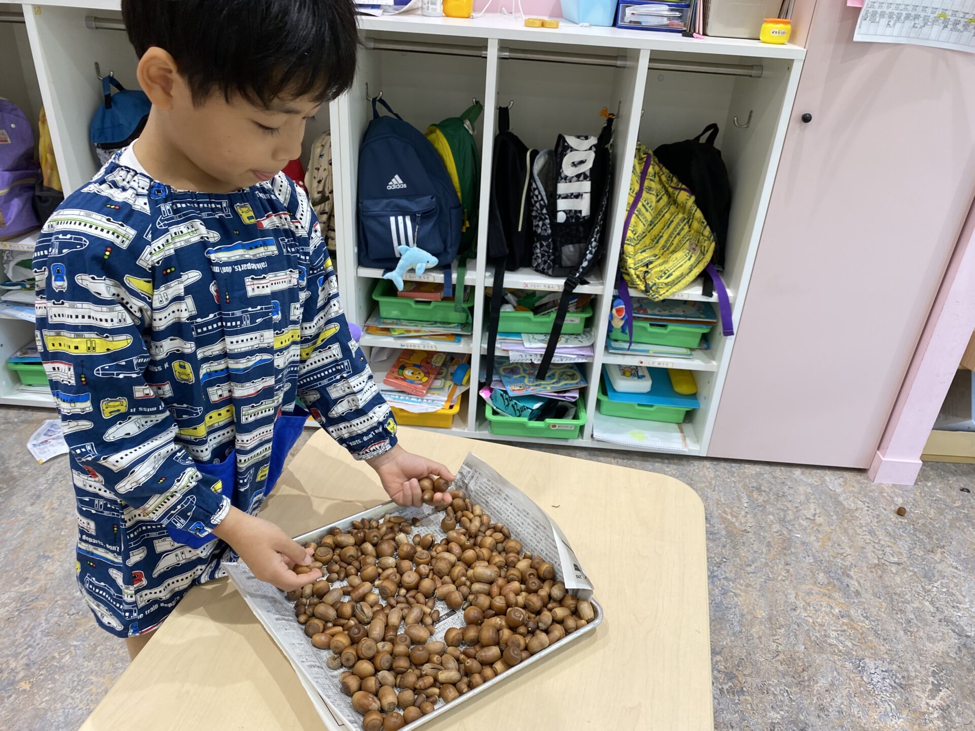 「どの木の実にしようかな~」と真剣に悩む子どもたち、、🤔
