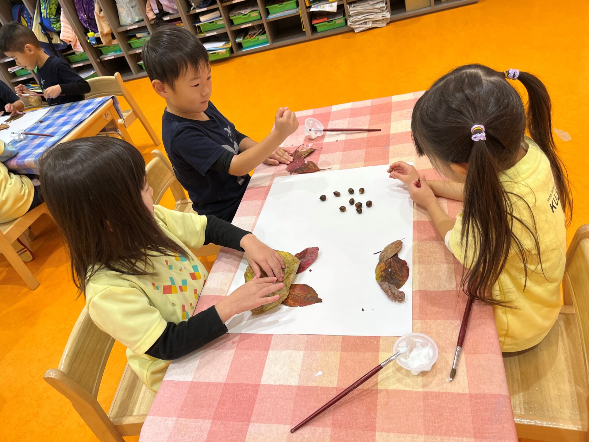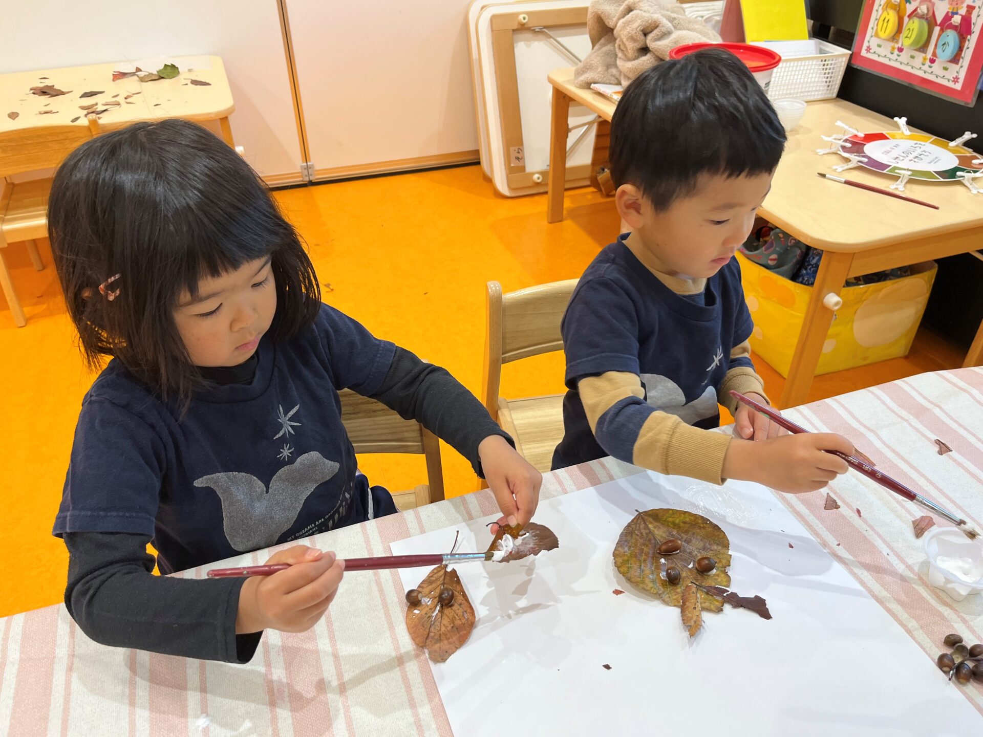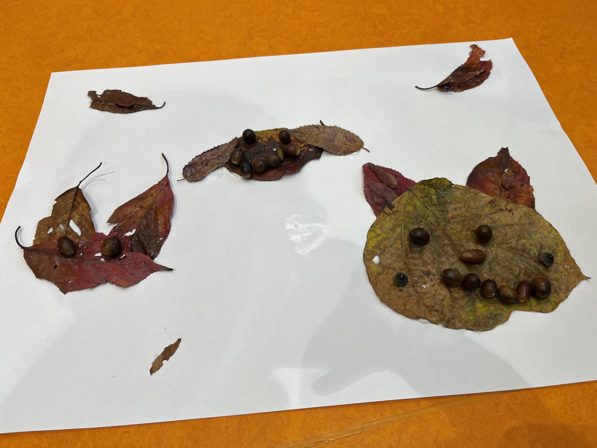 今日は落ち葉やどんぐりを使って製作をしました!