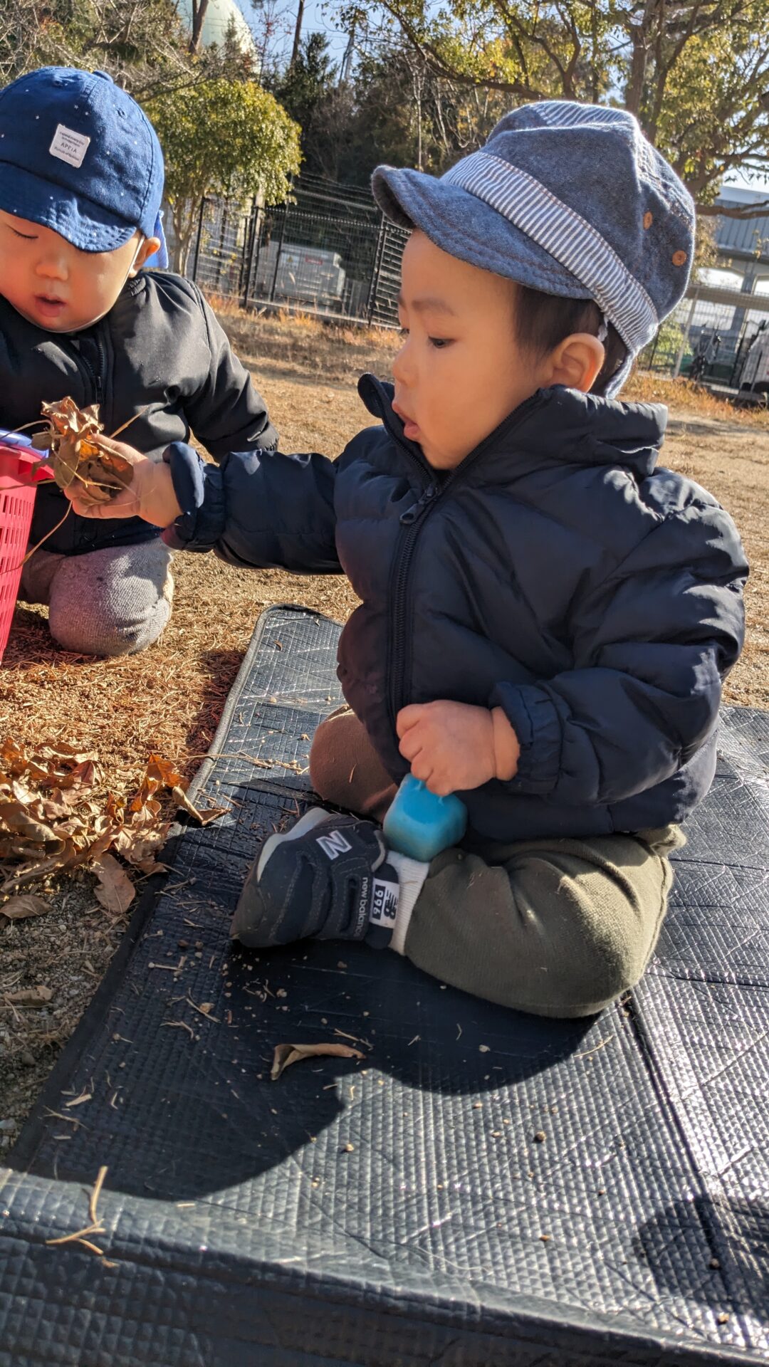 落ち葉や木の枝の上を歩いたり、スコップで突いてみると「サクサク♪」と音が!