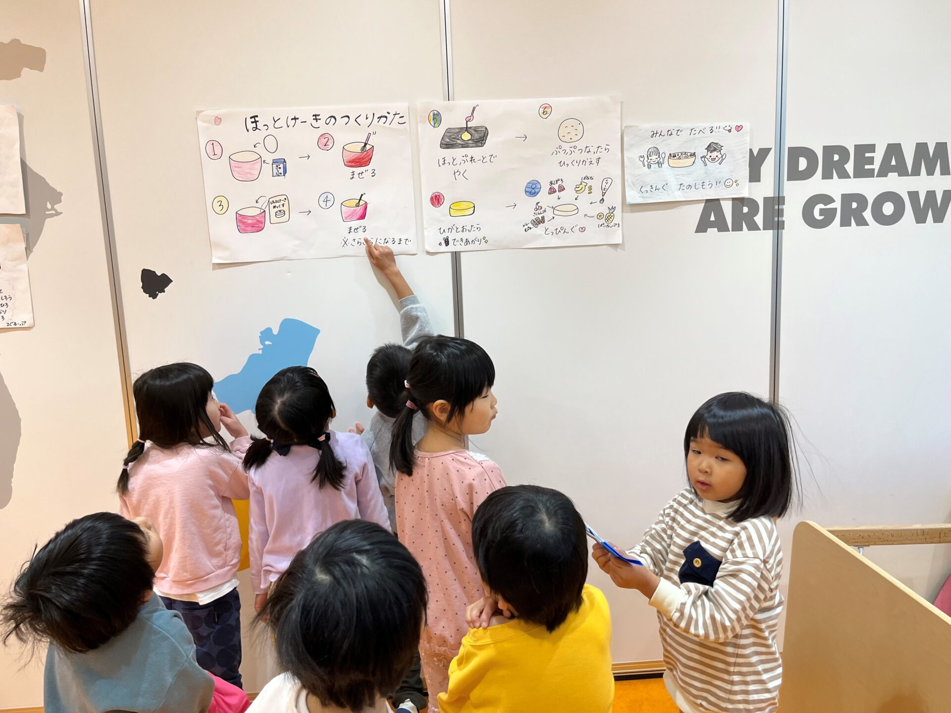 以前からお部屋に貼っていたホットケーキの作り方を見て楽しみにしていた子ども達・・・