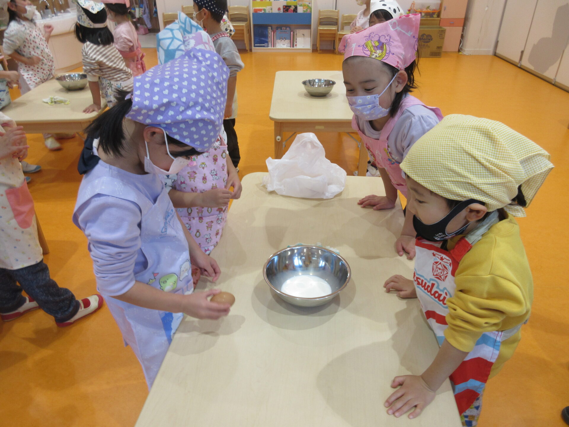 エプロン・三角巾・マスクをつけてクッキング開始✨