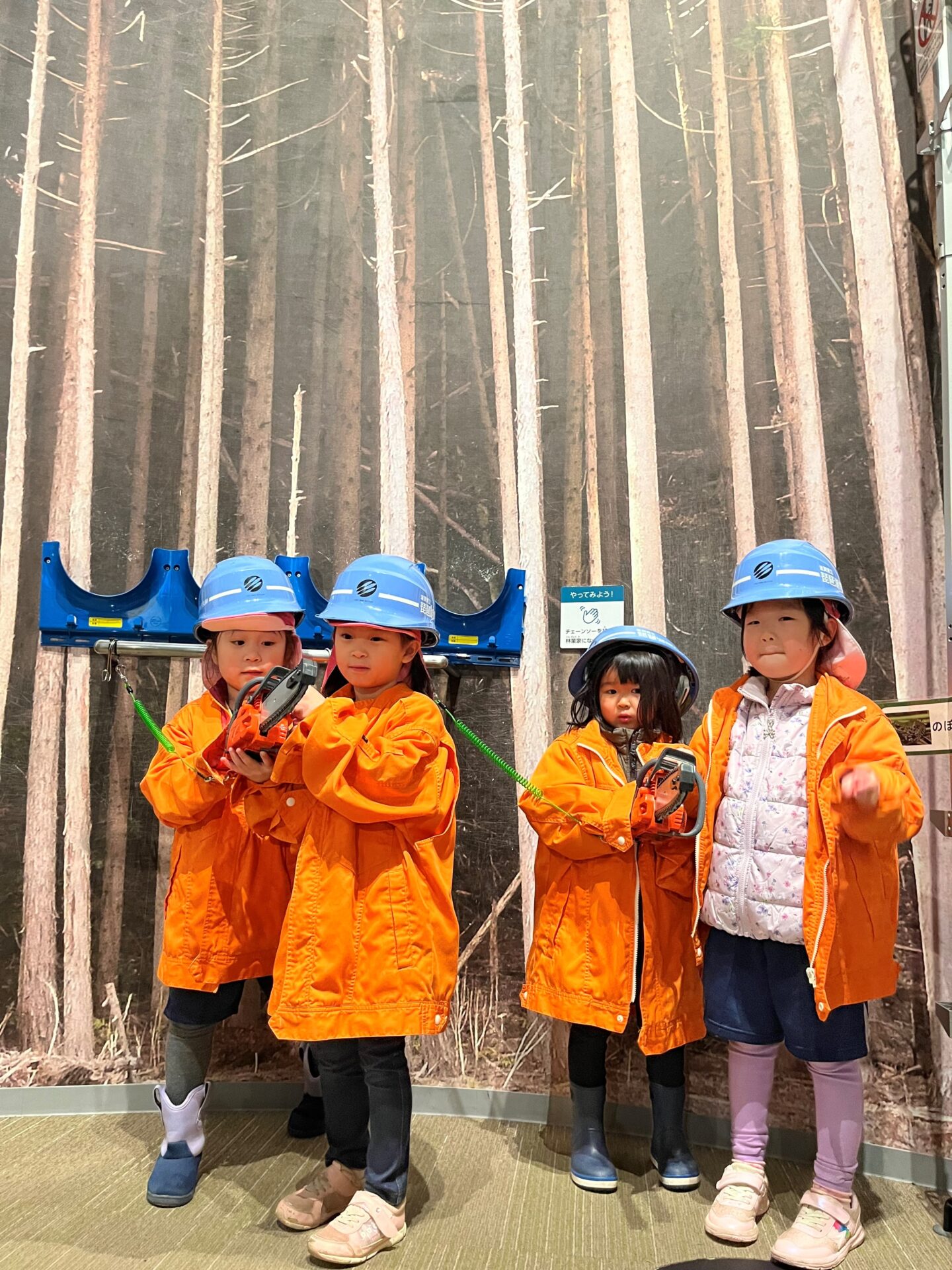 ヘルメットや服を着て、林業の仕事のユニフォームを着用し
